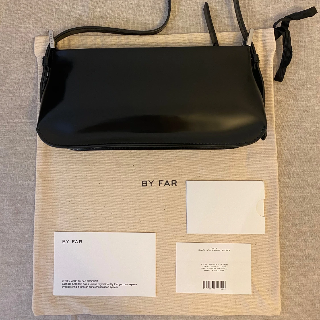 By Far svart axelremsväska i 100% läder. Helt ny, aldrig använd! 🖤🖤