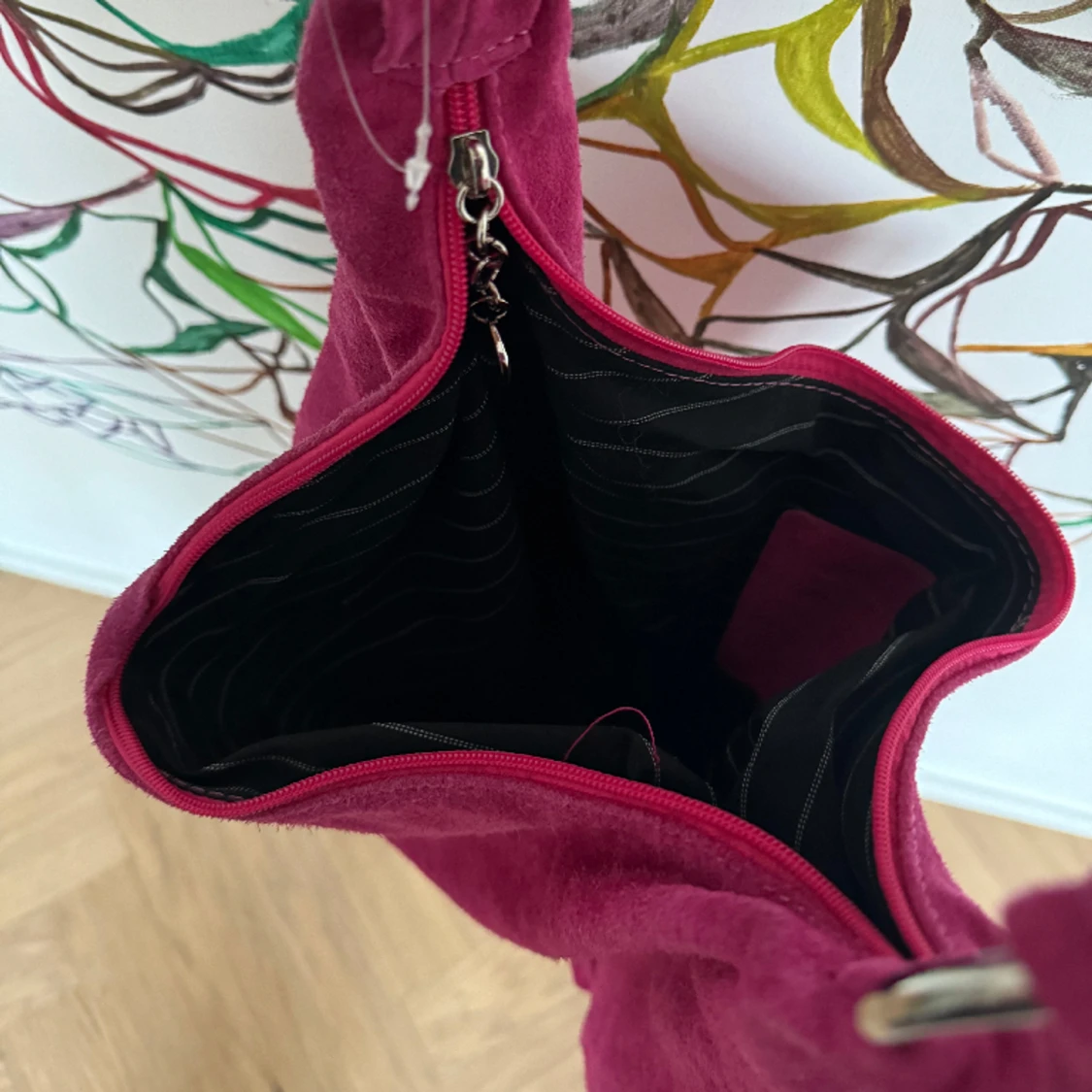 Otroligt snygg cerise väska som tyvärr inte kommer till användning.