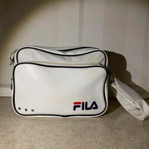 En vit och rymlig axelremsväska från Fila.🖤 Säljs då den inte kommer till användning längre. Den är i fint skick och har endast några få tecken på användning(små fläckar), men det är knappt märkbart. Jag säljer den för 80 kr.😊