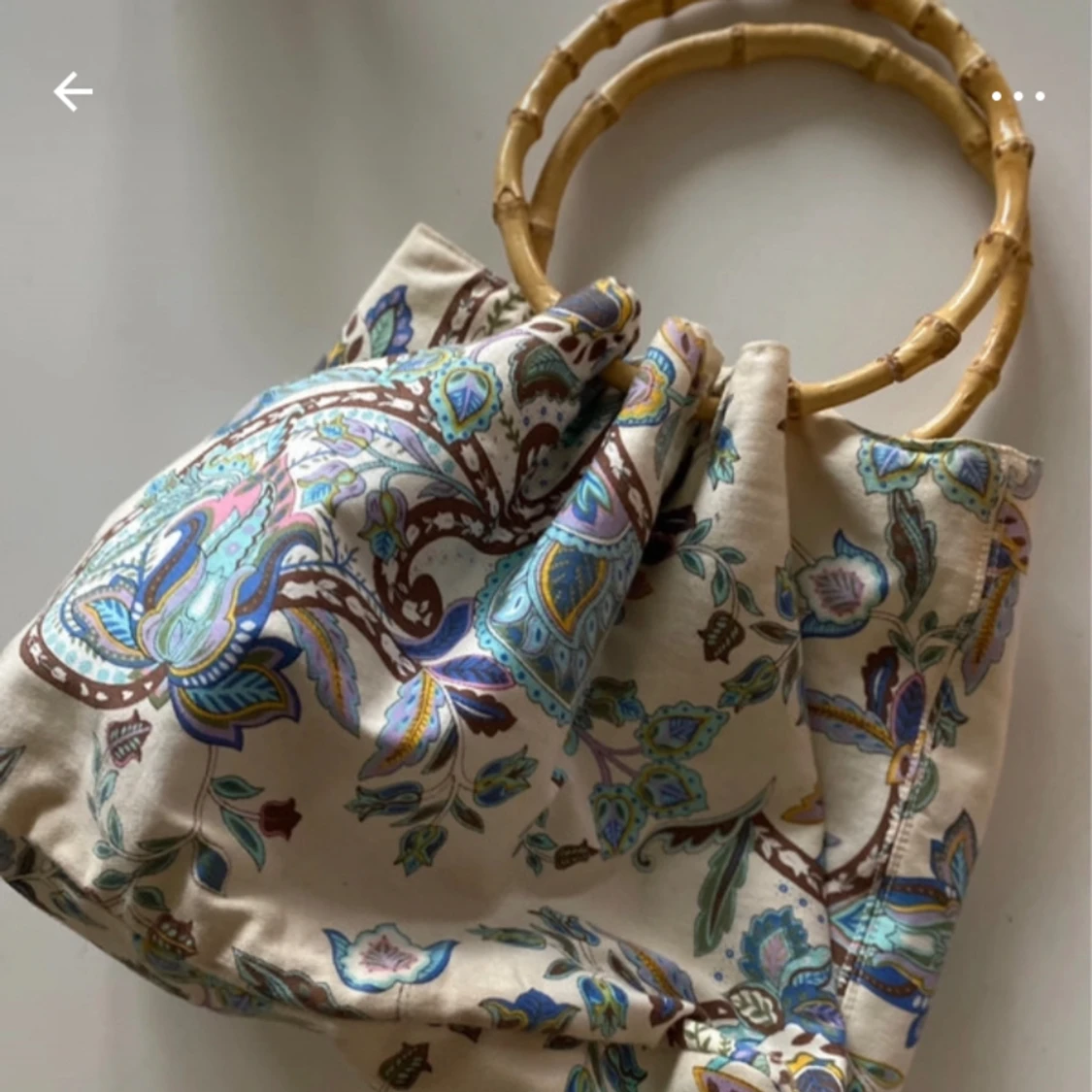 Fint skick Sommarväska med vitt bottenfärg brun / blåa mönster Bambu handtag