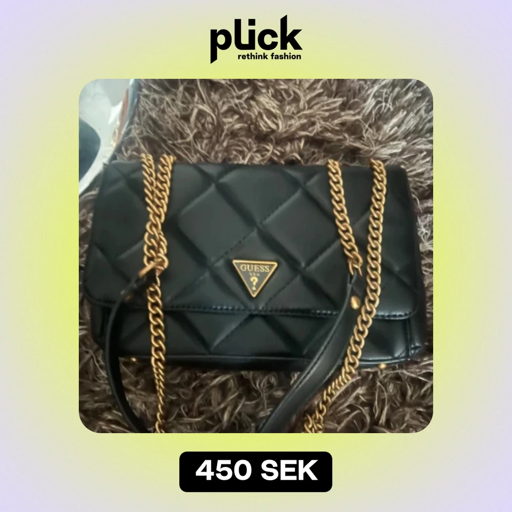 Svart läder väska me guld logga - Pris kan diskuteras vid snabb affär då ja ska åka iväg 31 dec. Använd men i bra skick. Behövt knyta kedjan inne i väskan så att axelbandet ska vara i rätt storlek.