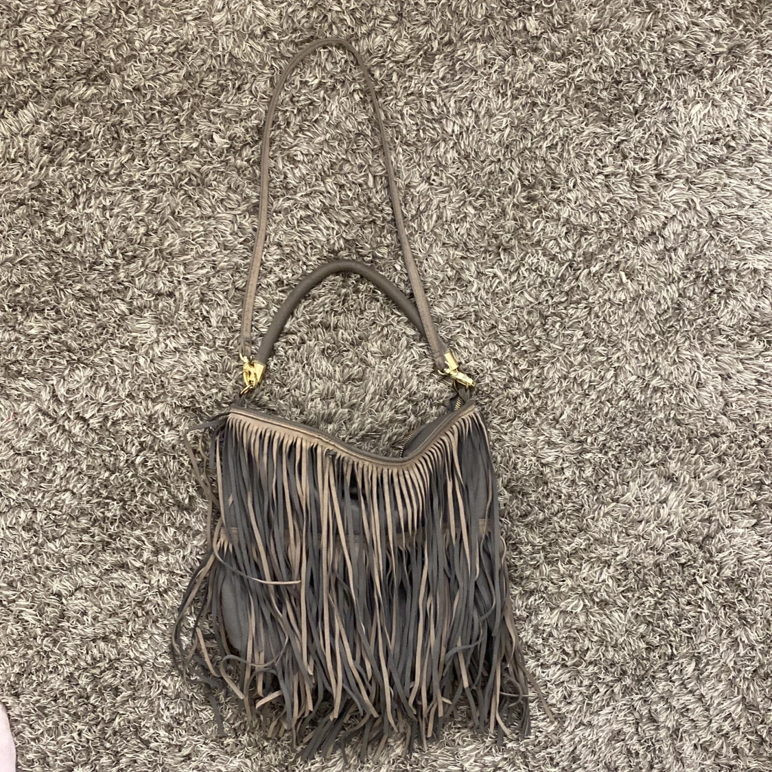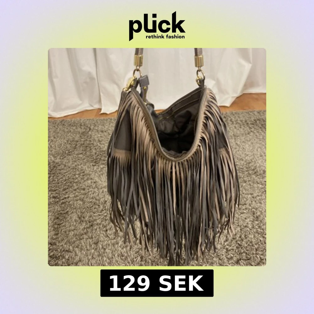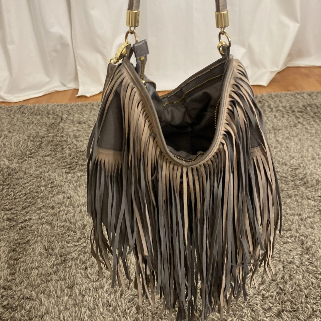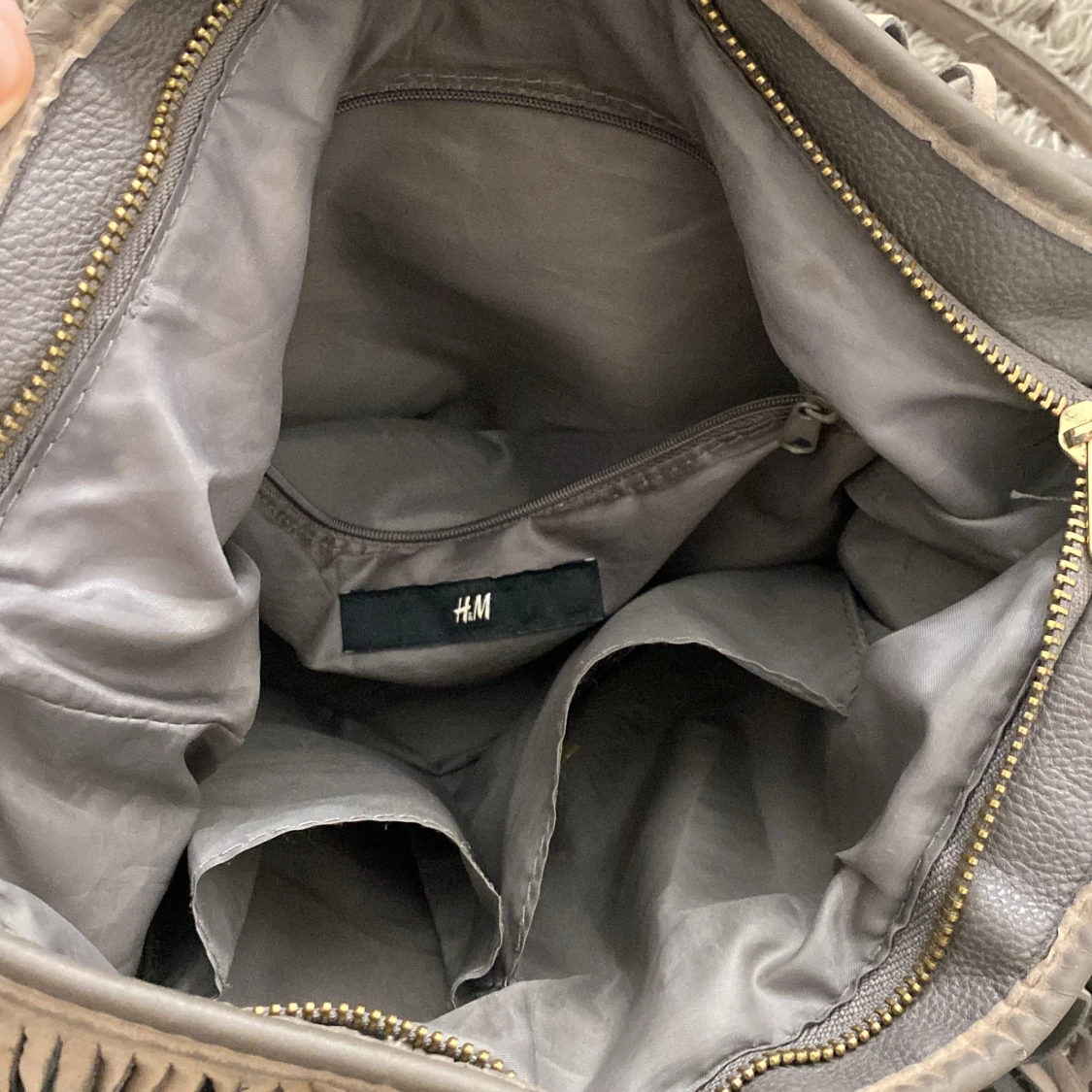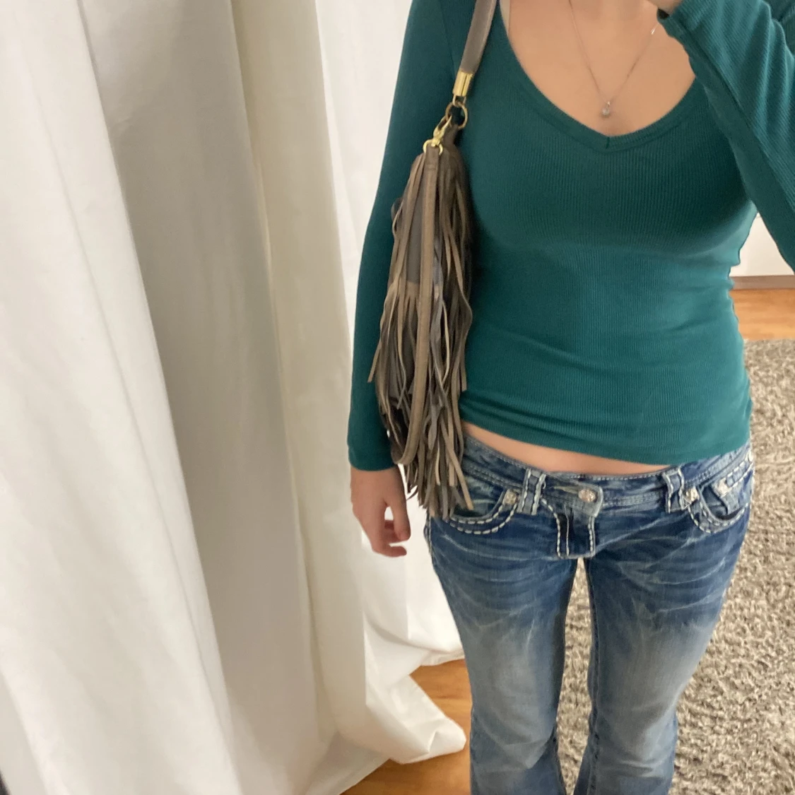 Snygg mörkgrön axelväska från H&M med långa fransar och dragkedja. Rymmer ganska mycket samt har flera fack