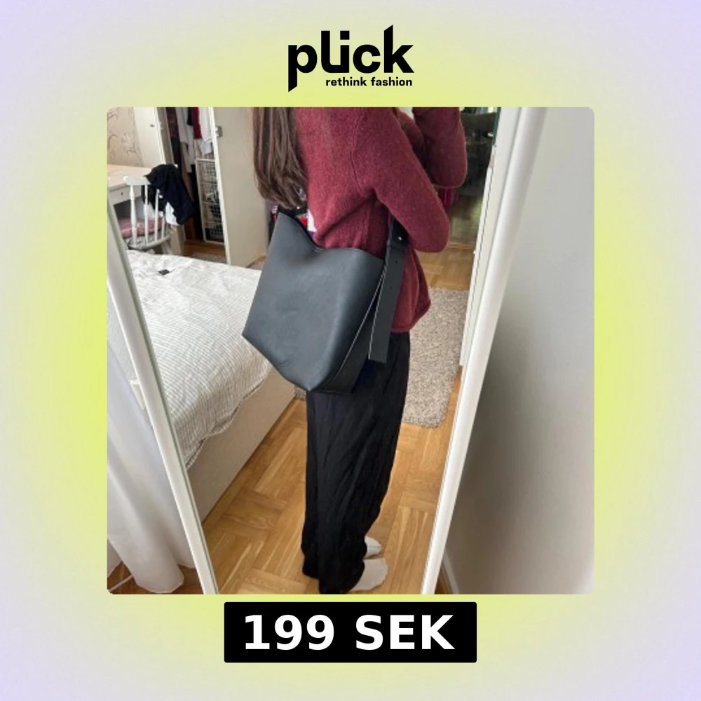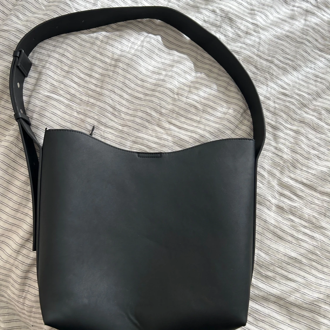 Minimalistisk svart axelväska i slätt skinn med bred, justerbar rem och innerfack med dragkedja, rymlig väska!