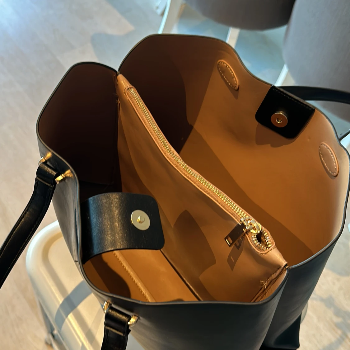 Säljer denna fina väskan i konstläder. Den har två stora fack och ett mindre i mitten. Den är i nyskick då jag aldrig använt den. Den är från Mango och jag köpte den för 650 kr.