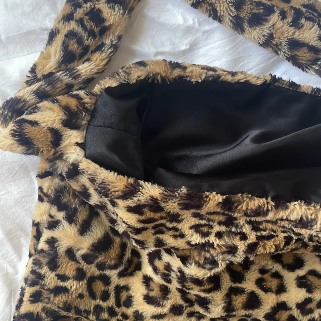 Leopards väska fluffig. Typ samma längd som väskan på sista bilden (inte min bild). Köpt av en tjej som gjorde egna väskor på instagram. Super bra gjord.