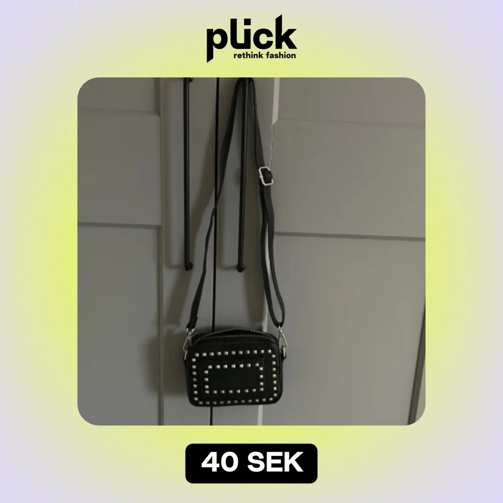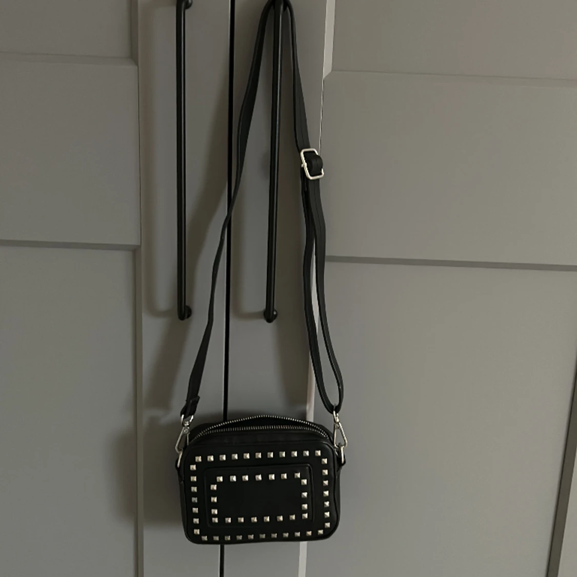 Svart väska med silvriga taggar, axelband kan ändras om man vill ha den längre eller kortare🖤🤍