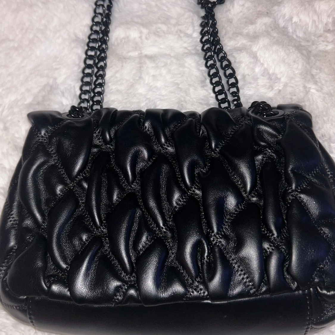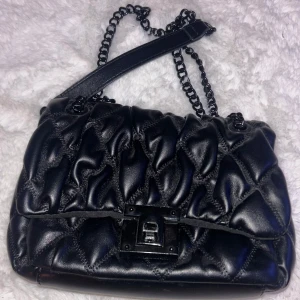 Säljer denna super coola svarta axelväskan från Stradivarius!!💕 Säljer då den inte längre kommer till användning. Är i bra skick (repor på knappen) och använts måttligt. Kan användas som både crossbody och som axelväska. Skriv innan köp och om ni har frågor :) Köparen står för frakt!