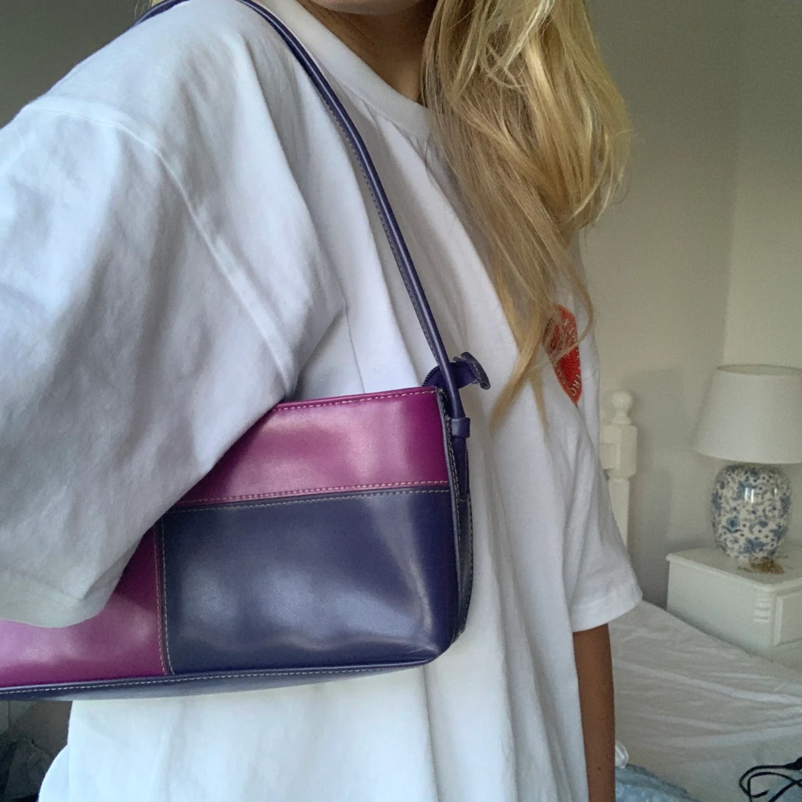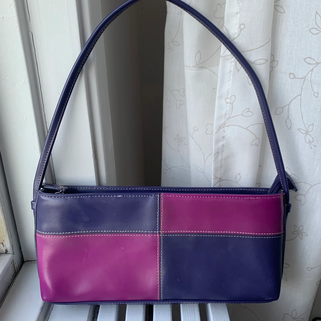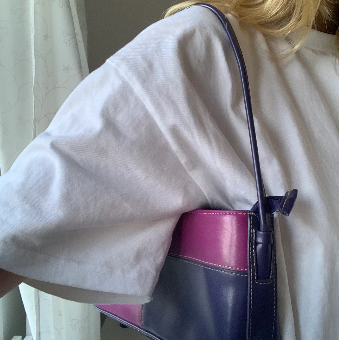 En lila rutig baguettväska köpt på Veras vintage! Super fint skick och olika fack på insidan😇