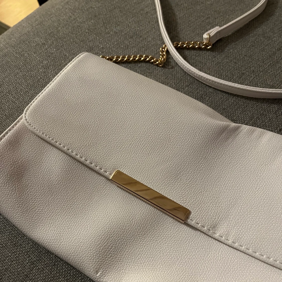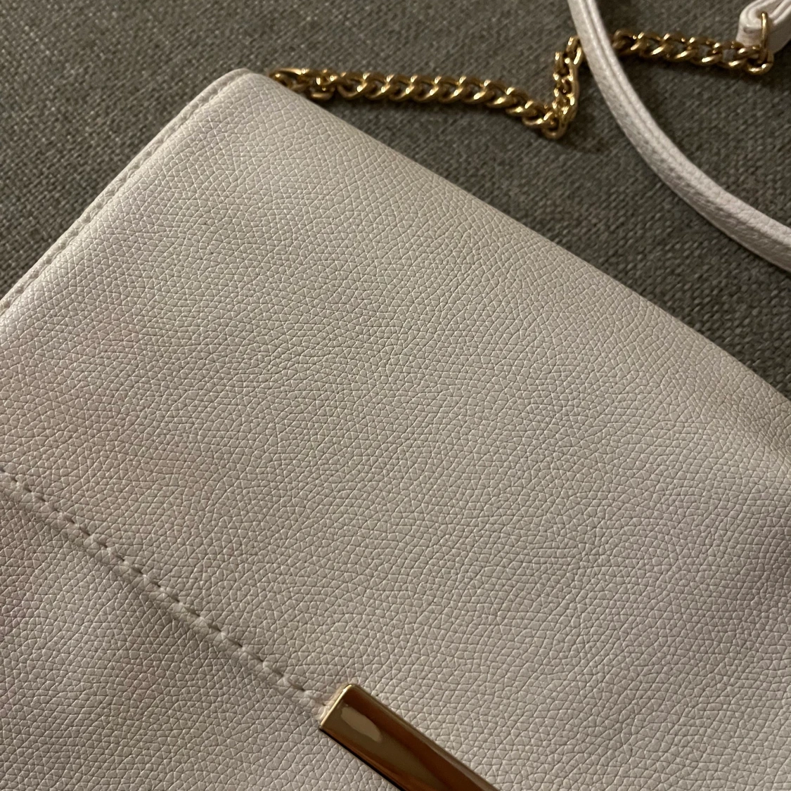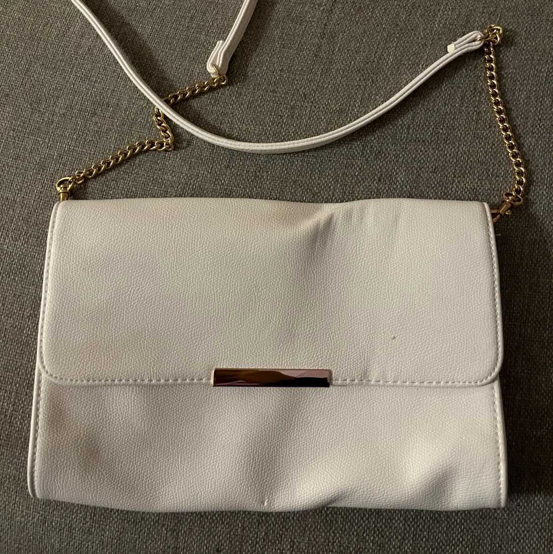 En vit väska med guld/vita band (lagom längd) bra med utrymme, säljer för har ingen andvändning av den och aldrig andvänt, skriv för mer info, bilder och diskussion angående priser❤️ eget val av fraktsätt (pris kan diskuterask)