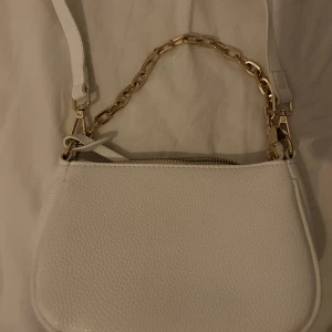 Vit handväska med guldkedja och vanlig typ handtag. Köpt för 400kr använd fåtal gånger. Skriv för fler bilder