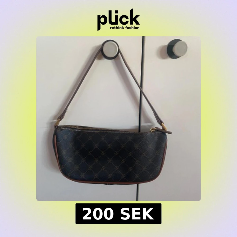 Snygg axelväska med ett elegant mönster i svart och brunt. Väskan har en praktisk dragkedja
