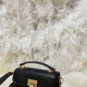 Svart läder väska me guld logga - Pris kan diskuteras vid snabb affär då ja ska åka iväg 31 dec. Använd men i bra skick. Behövt knyta kedjan inne i väskan så att axelbandet ska vara i rätt storlek.