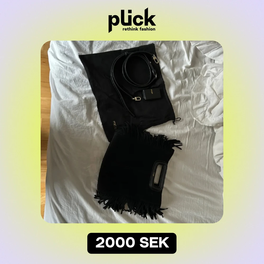 Säljer en snygg svart maje väska med fransar. Den har en stilren design med ett handtag och en avtagbar axelrem. Perfekt för både vardag och fest! Väskan är i mycket bra skick och kommer med en skyddspåse och kvitto. Knappt andvänd!!🥰💖🥹