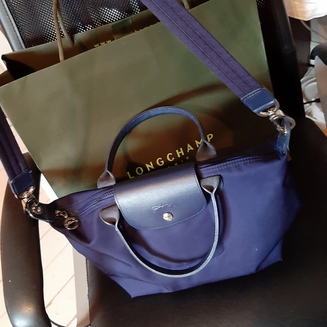 Äkta Longchamp väska. inköp i Paris, nytt skick..blå färg ((nypris1800kr.))