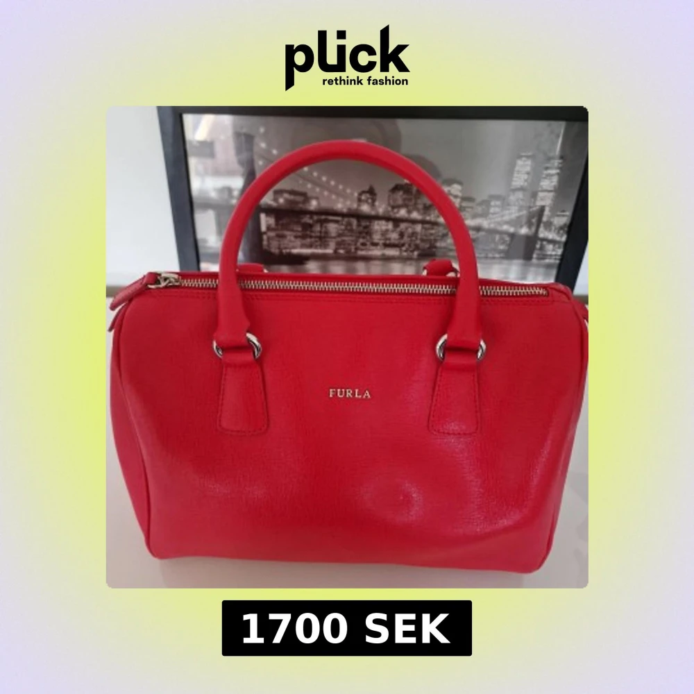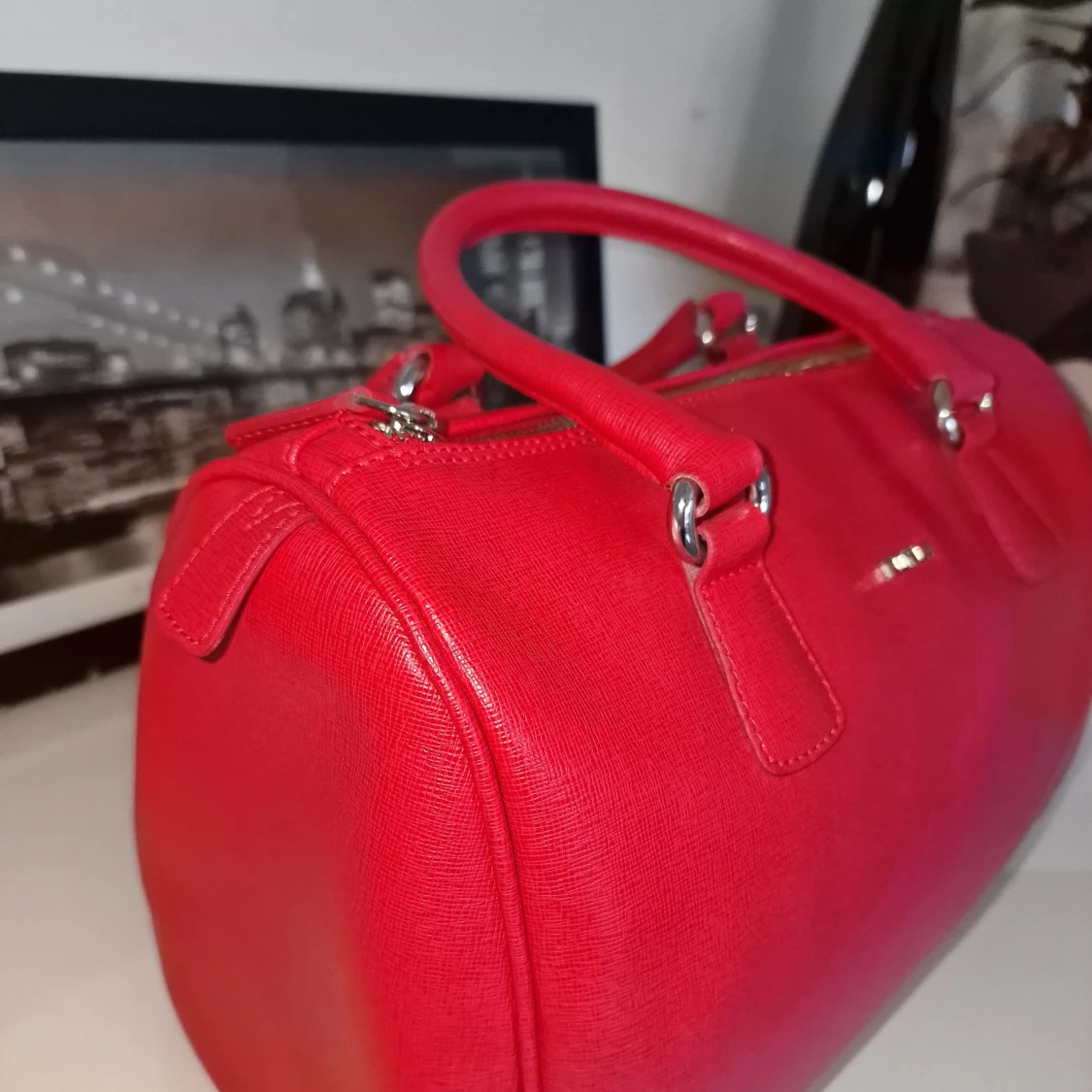 Snygg röd handväska från italienska designmärket Furla med silverfärgade detaljer och dragkedja. Aldrig använd och därav säljes den. Garderobsrensning så kika gärna på övriga auktioner.