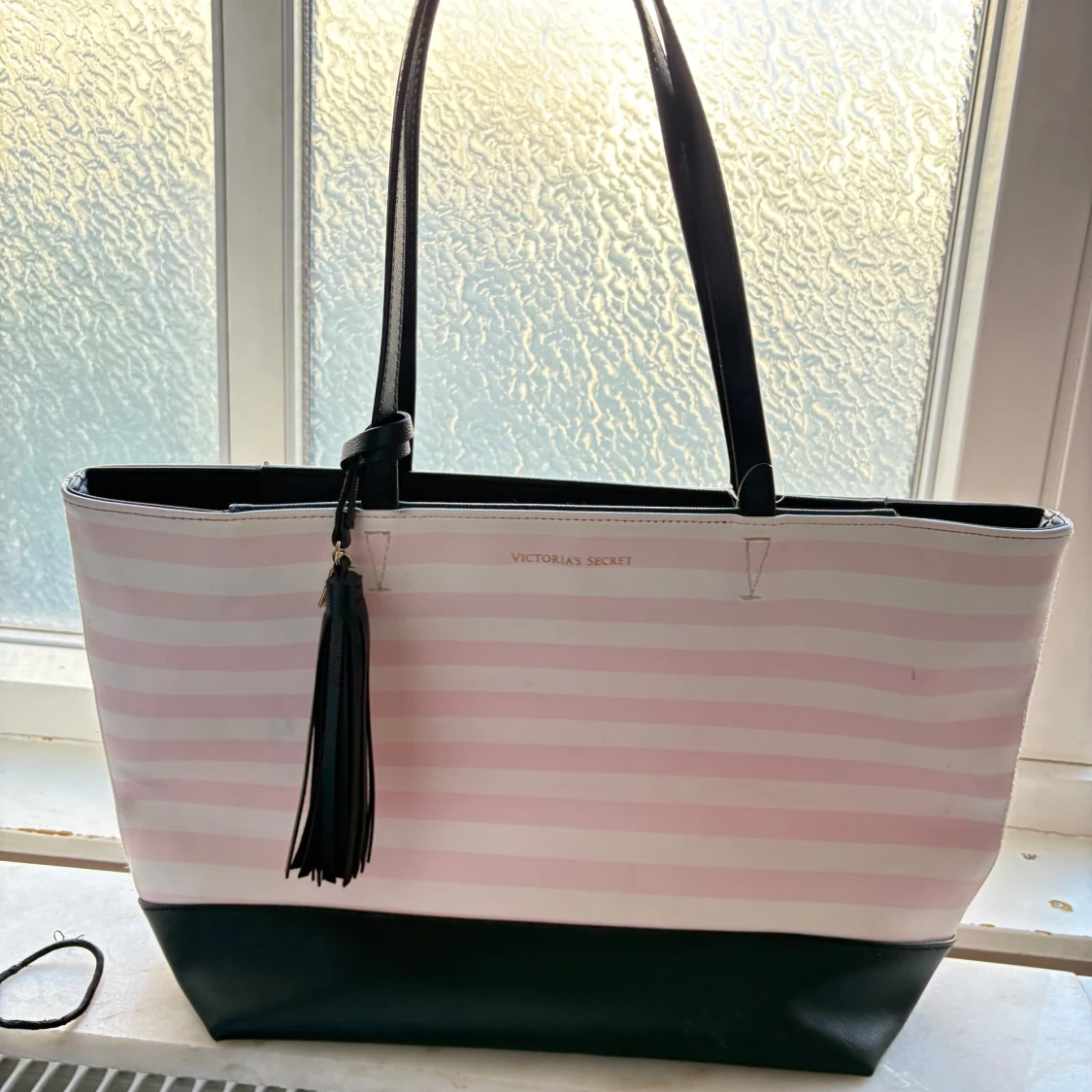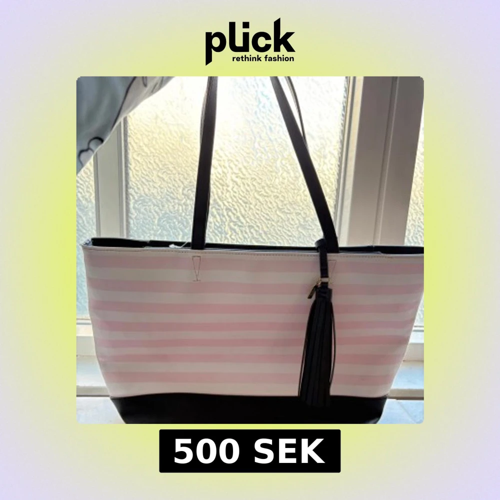 Snygg axelväska från Victoria's Secret med rosa och vita ränder. Knappast använd, bara legat i garderoben 🤷♀️