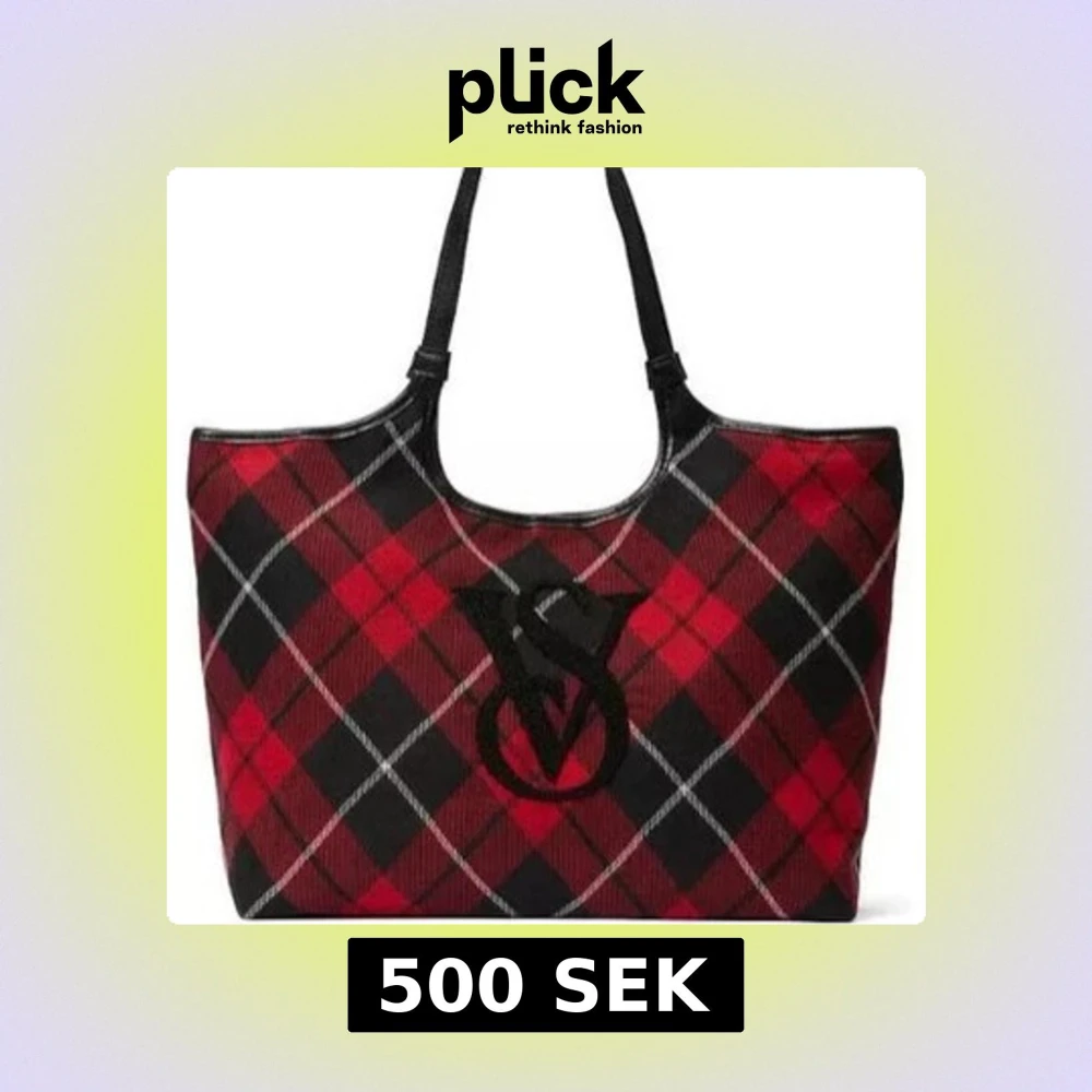 Snygg rutig shoppingväska i rött och svart med ett stort VS monogram på framsidan. Väskan är helt ny och oanvänd, i originalförpackning.