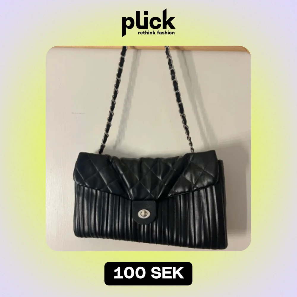 Säljer en snygg svart axelväska med quiltad design och kedja som axelrem. Går att ha som crossbody eller göra kortare. Köpt på second hand.