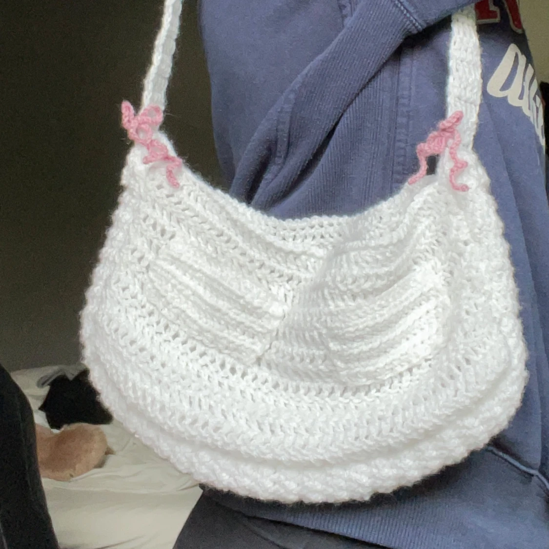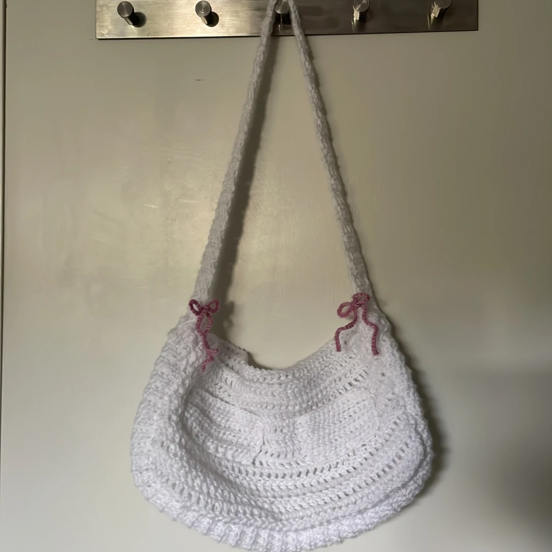 Vit virkad väska med rosetter 🎀💕