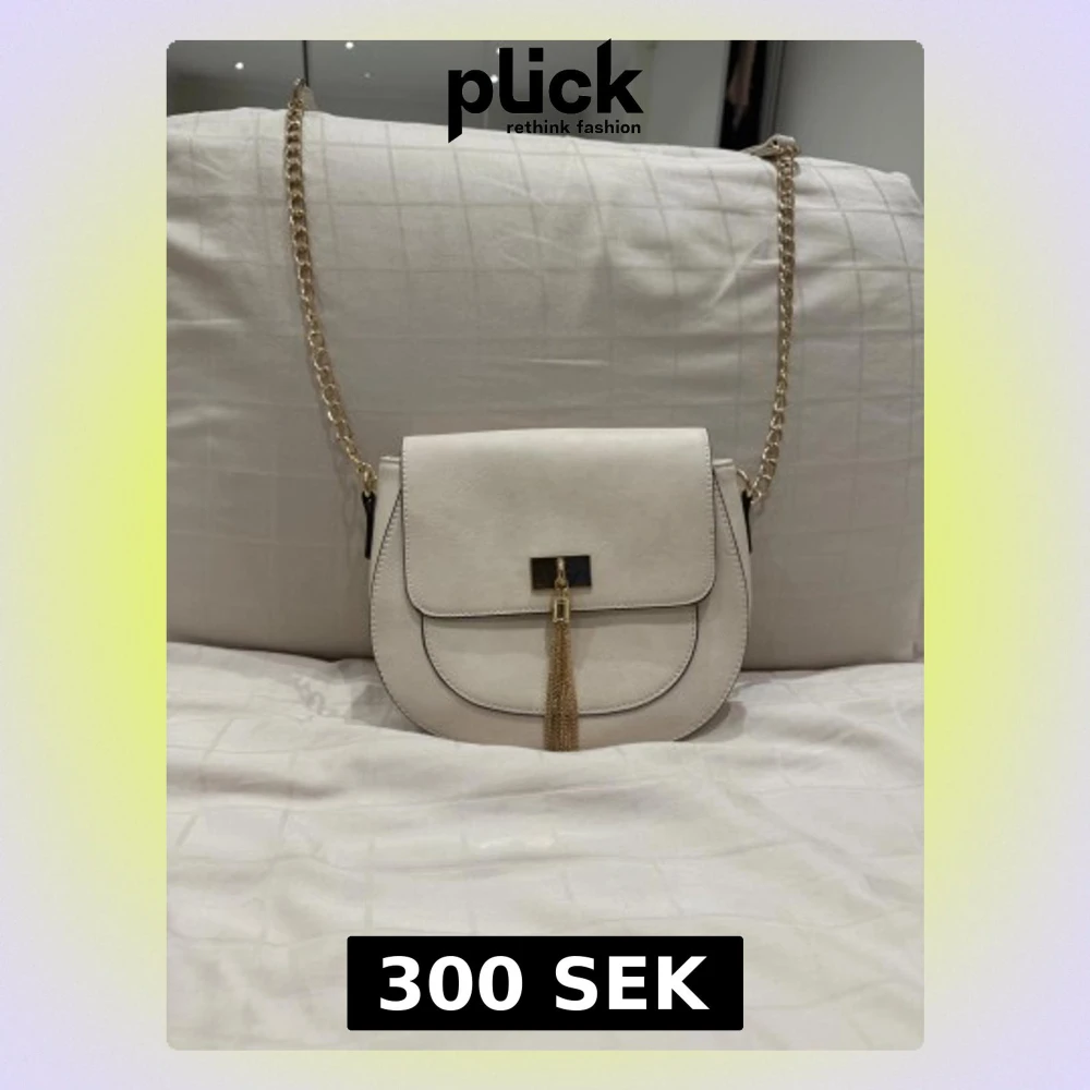Snygg vit axelväska från Call It Spring med rundad form och guldfärgad kedja som axelrem. Väskan har en dekorativ guldfärgad tofs framtill och ett praktiskt fack med dragkedja på baksidan. Perfekt storlek för det viktigaste och stilren design.