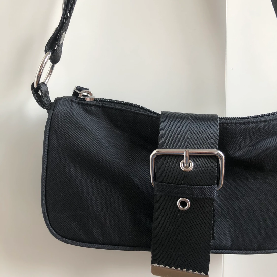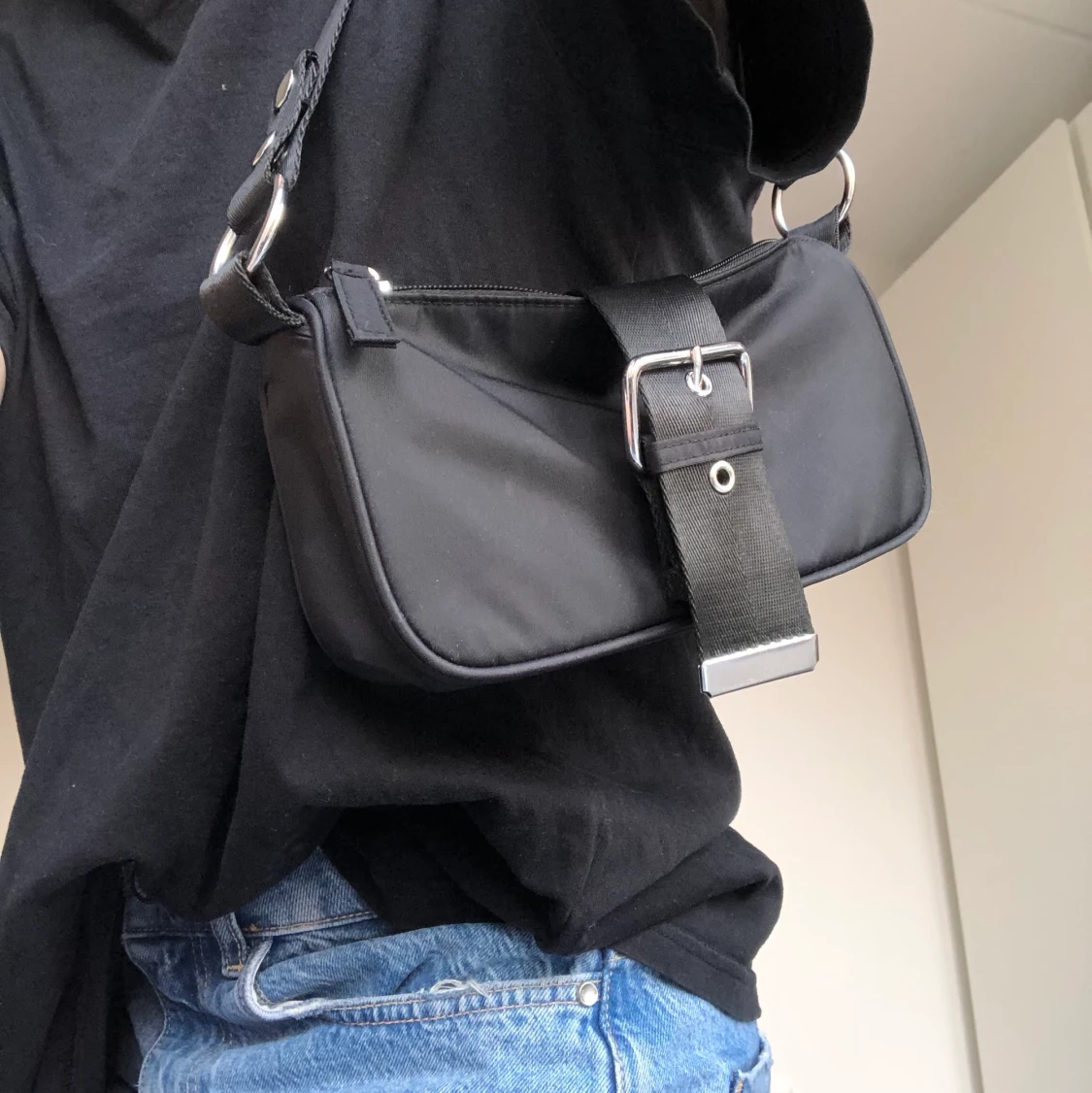 super trendig och söt svart väska med band som går över ena axeln, är 6 månader gammal och köpt helt ny! Väldigt sällan använd. Köpt för 300kr