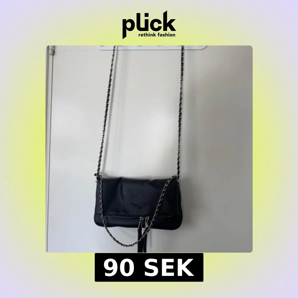 Zadig inspirerad. Snygg svart axelväska i skinn med silverfärgad kedjerem och dragkedja framtill. Väskan har ett rymligt huvudfack och innerfoder i brunt tyg. Perfekt storlek för det viktigaste och ger en cool vibe till din outfit.
