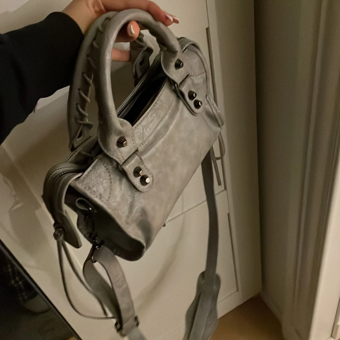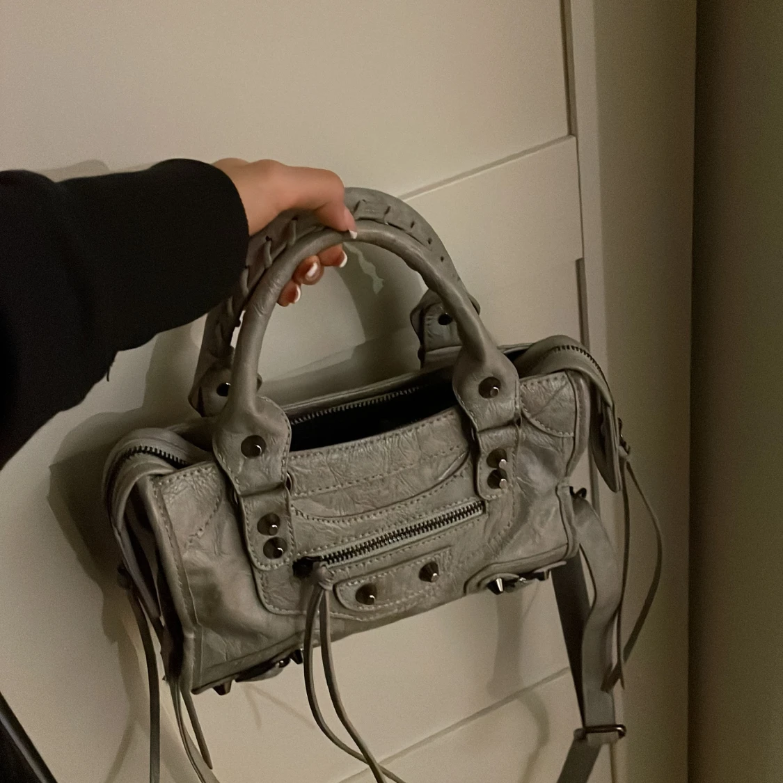 Jättefin grå axelväska/handväska med detaljer som dragkedja och ”nitar”. Väskan har en justerbar axelrem och handtag för enkel bärning. Perfekt för att bära dina dagliga nödvändigheter med stil. (Intressekoll) skriv för fler frågor, pris kan diskuteras!! Byter gärna