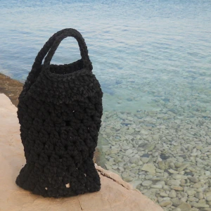 Handgjord väska. Perfekt till strande/på stan. Man får plats med en tidning i höjd.