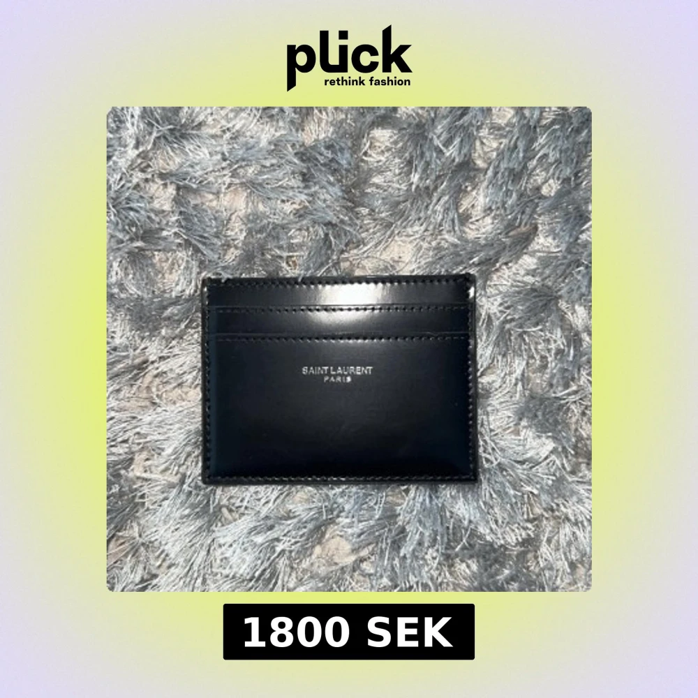 Slimmat och stilrent svart kortfodral från Saint Laurent Paris i glansigt leather. Perfekt för dig som vill ha ett lyxigt och minimalistiskt sätt att bära dina kort. Diskret logga framtill och flera fack för kort på båda sidor.