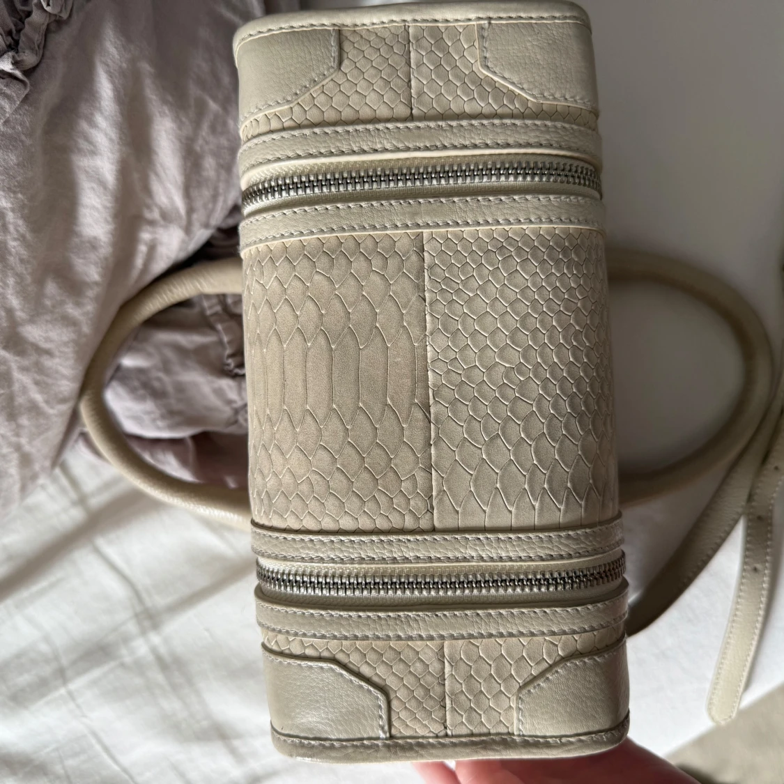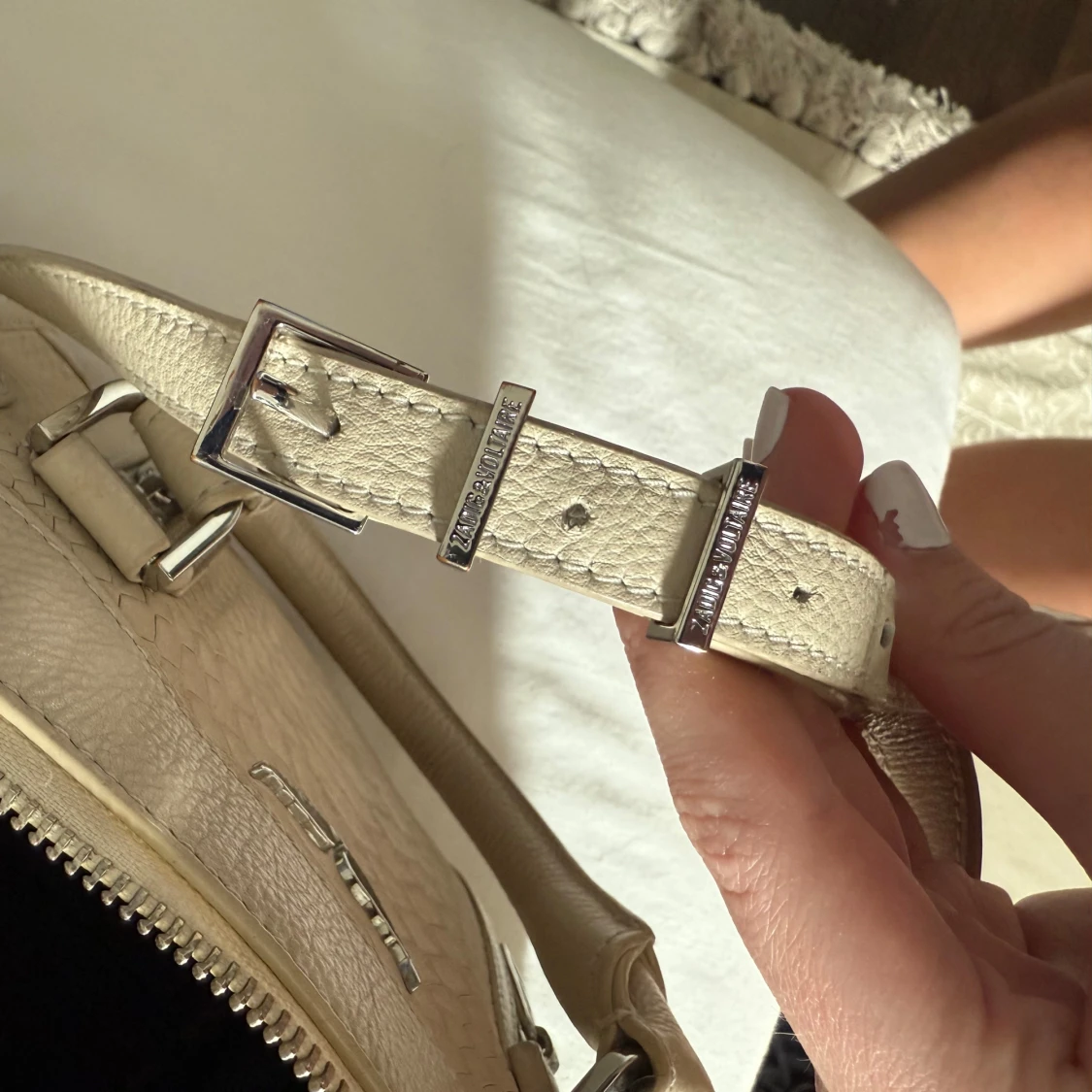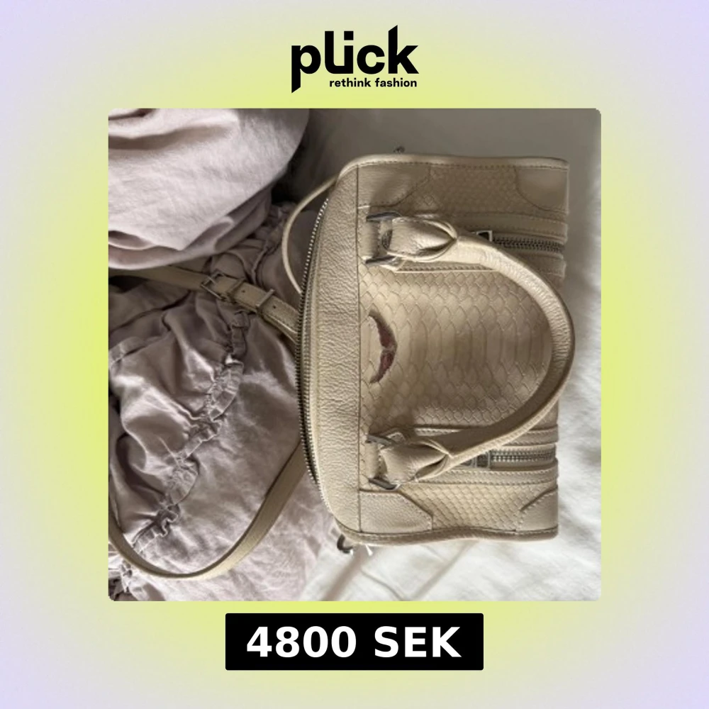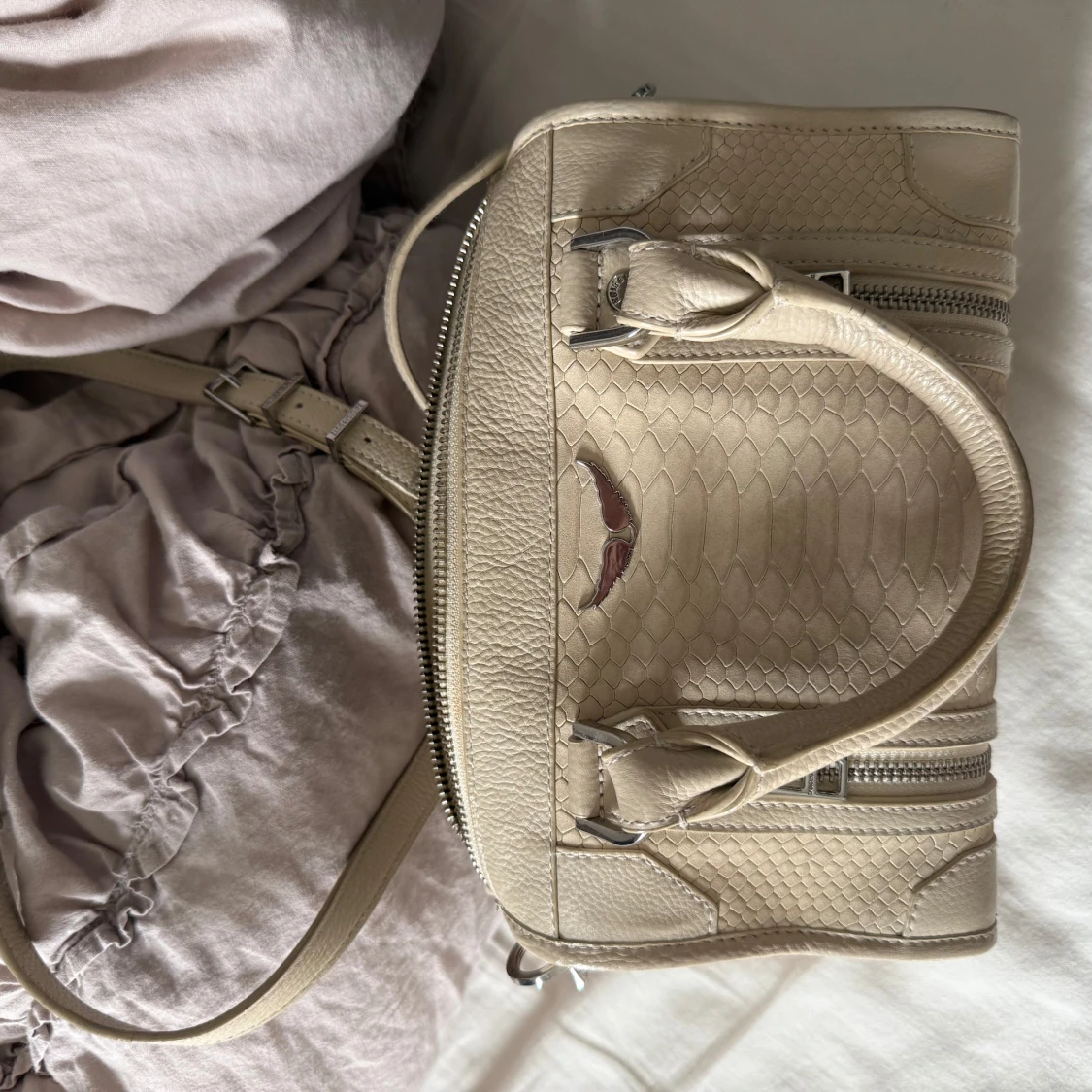 Säljer en beige handväska från Zadig & Voltaire i skinn med coolt ormskinnsmönster. Väskan har både handtag och justerbar axelrem, silverfärgade metalldetaljer och dragkedjor. Kvitto finns!