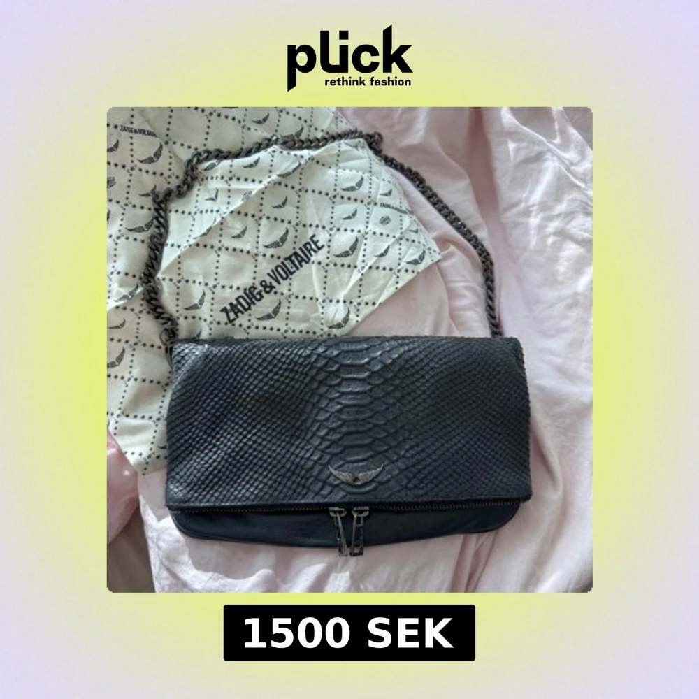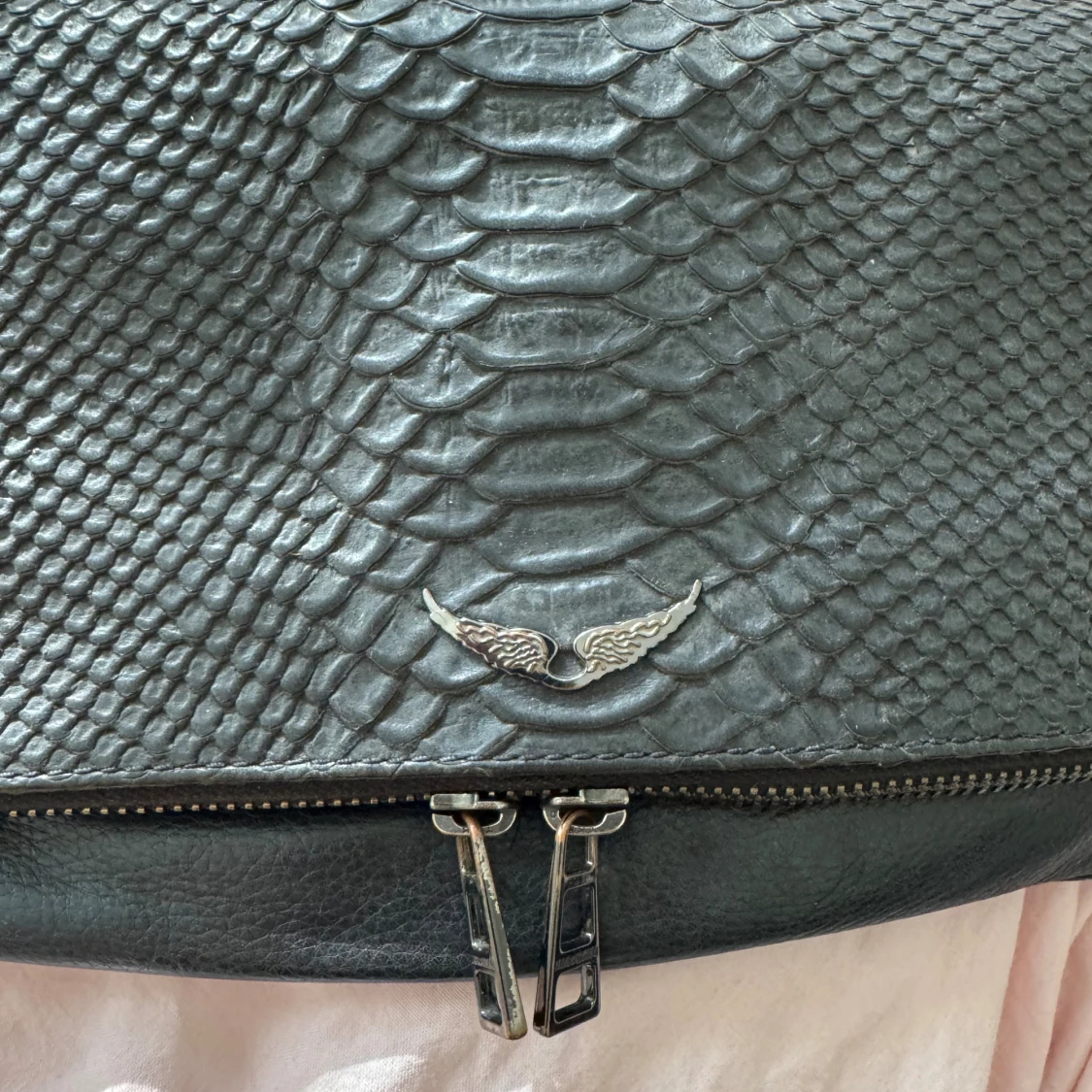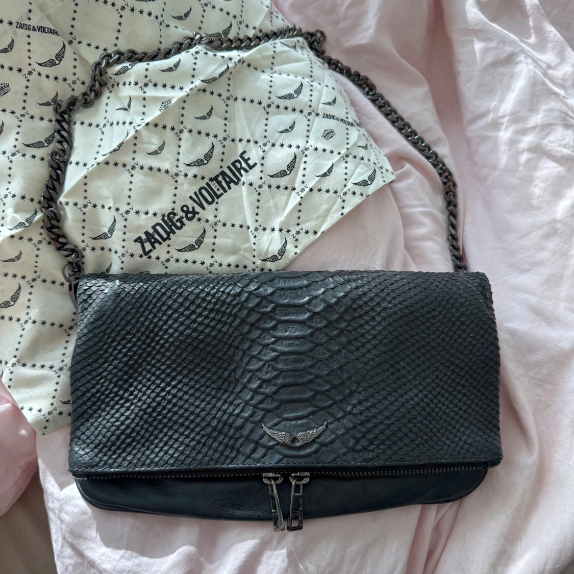 Snygg svart axelväska från Zadig & Voltaire i präglat skinn med reptilmönster. Använd men fordrande fint skick.