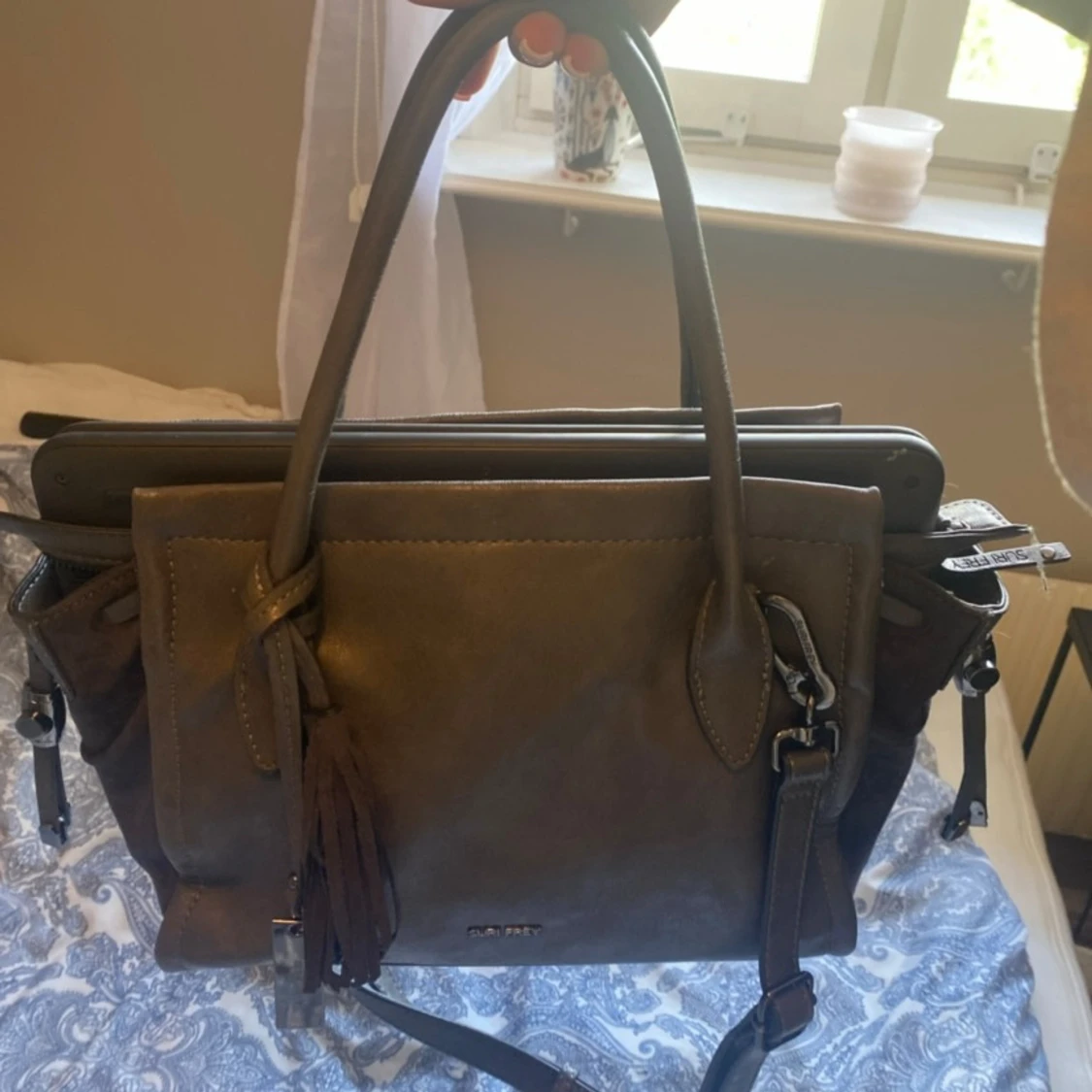 Har köpt massa nya väskor på senaste och har bara blivit väldigt trött på denna vilket är den enda anledningen till varför jag säljer den, inga slitningar. Får plats med min skoldator i den som man ser på andra bilden för storleks kontext!