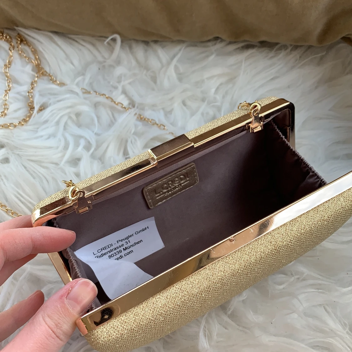Perfekt väska till bal eller liknande, det var vid det tillfället jag använde den iallafall! Perfekt och liten, axelbandet kan stoppas in om man ej vill använda det.