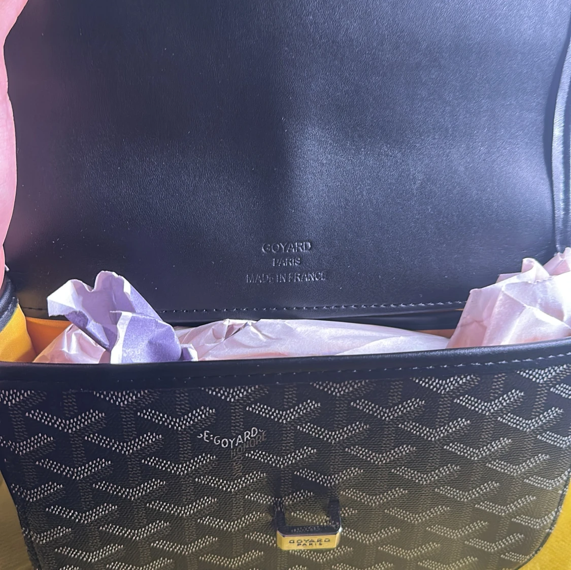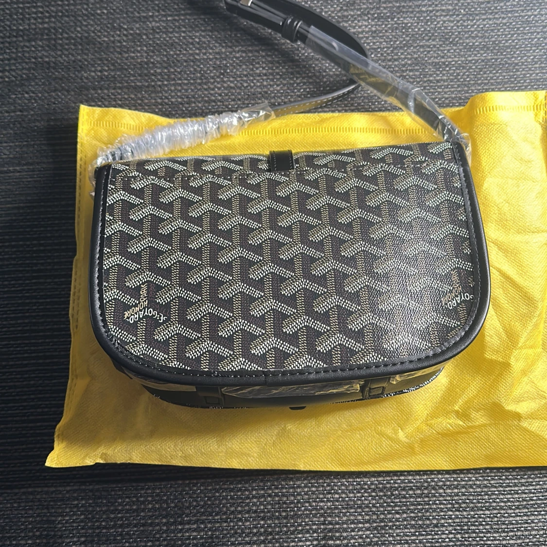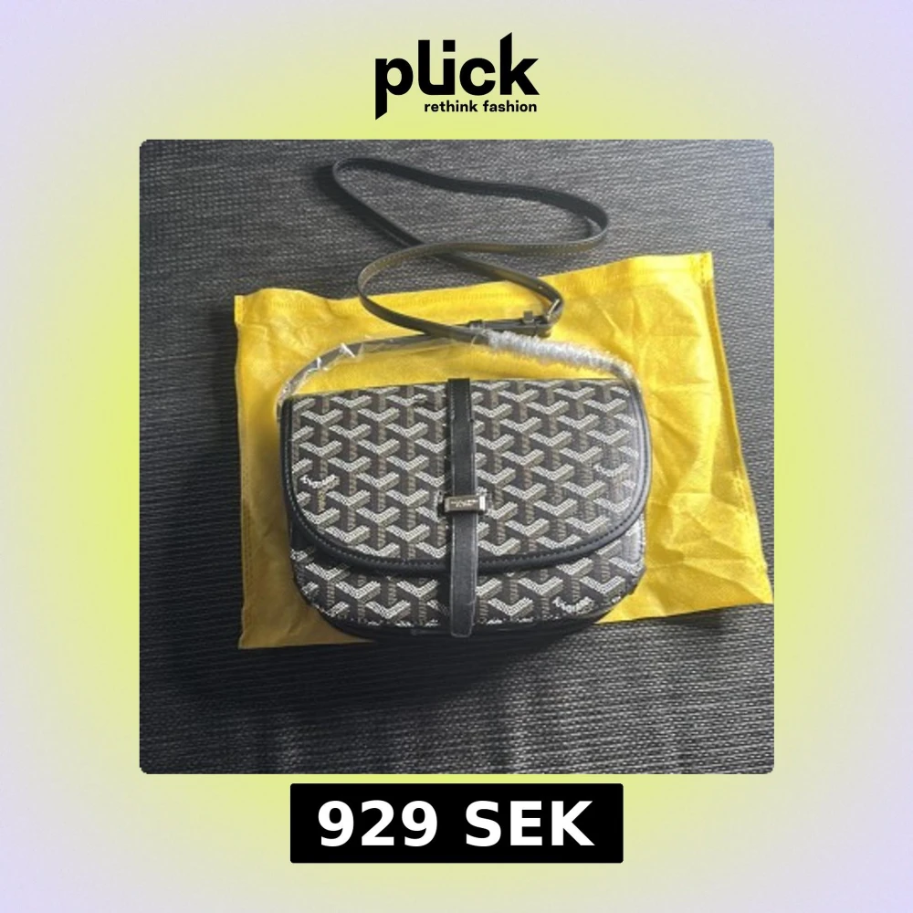 Snygg svart axelväska från med ikoniskt grafiskt mönster i vitt och beige. Väskan har justerbar axelrem, lock med spänne och detaljer i skinn. Perfekt storlek för det viktigaste och en riktigt stilren accessoar.