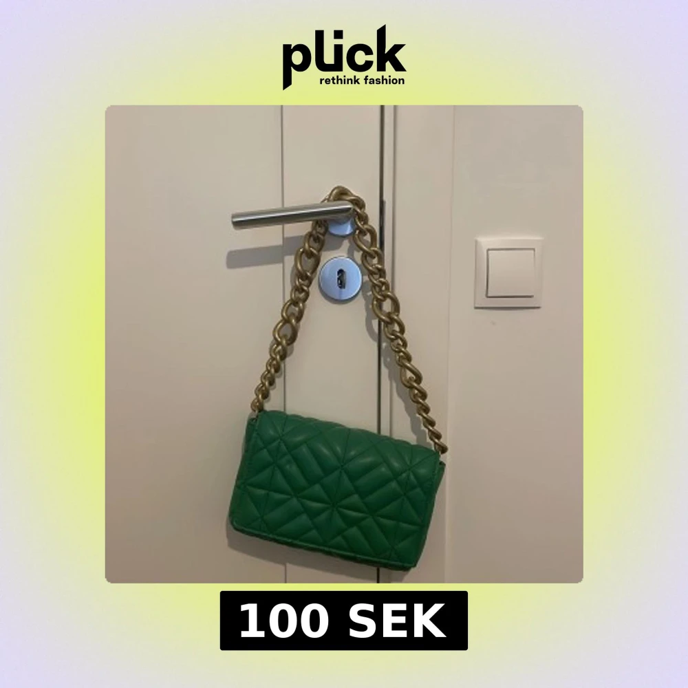 Säljer en grön quiltad axelväska med chunky guldfärgad kedja som axelrem. Väskan har en cool geometrisk quiltning och är tillverkad i skinnimitation. Perfekt för dig som vill sticka ut med en färgklick och trendig accessoar.