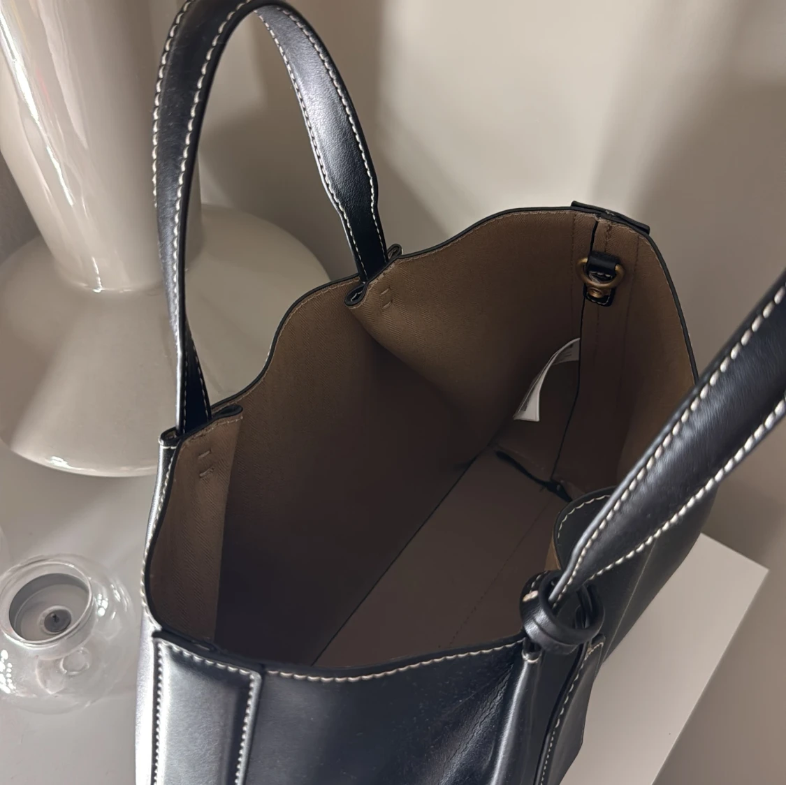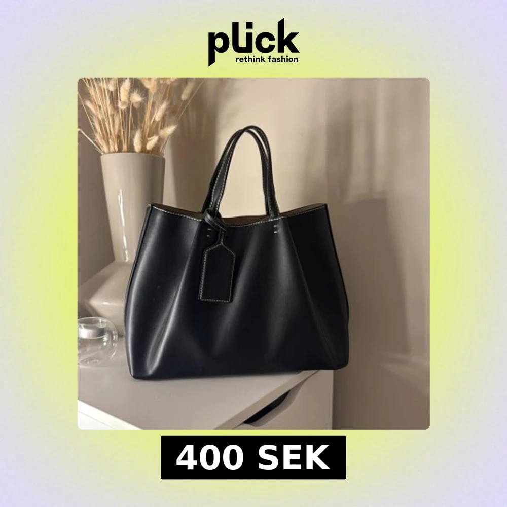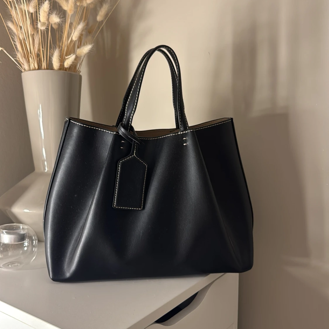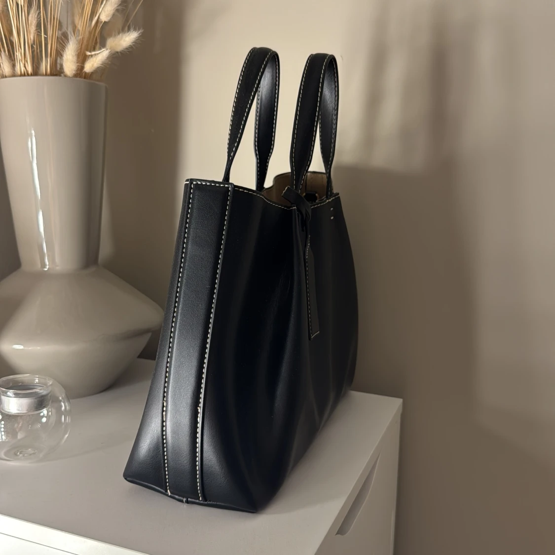 Stilren svart handväska med vita kontrastsömmar ⭐️⭐️knappt använd