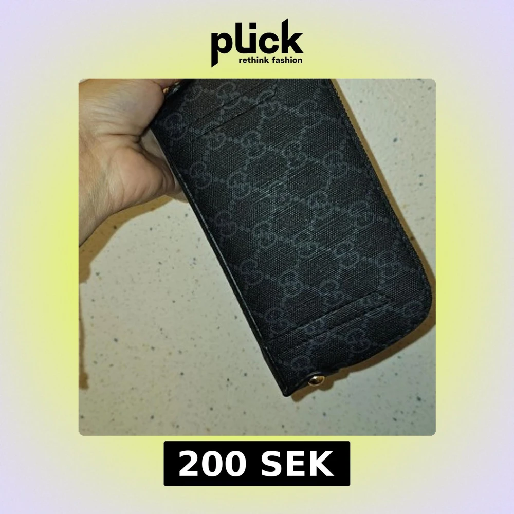 Snygg svart plånbok från Gi med klassiskt G-monogram över hela ytan. Plånboken har dragkedja i guldton och flera fack för kort och sedlar. Tillverkad i slitstarkt material med läderdetaljer, perfekt för dig som gillar lyxiga accessoarer.Betala med direkt swish far du gratis frakt:)