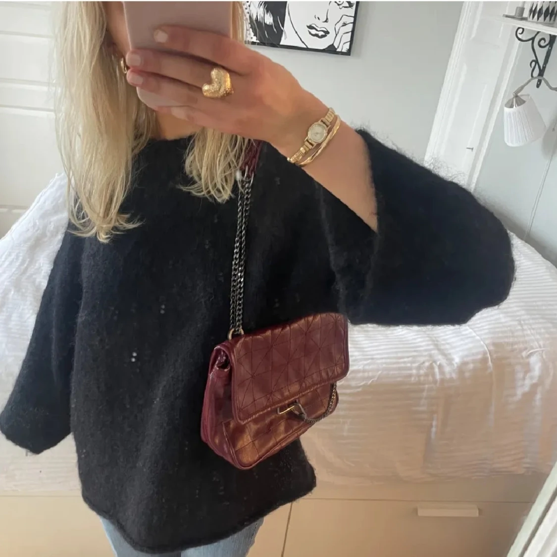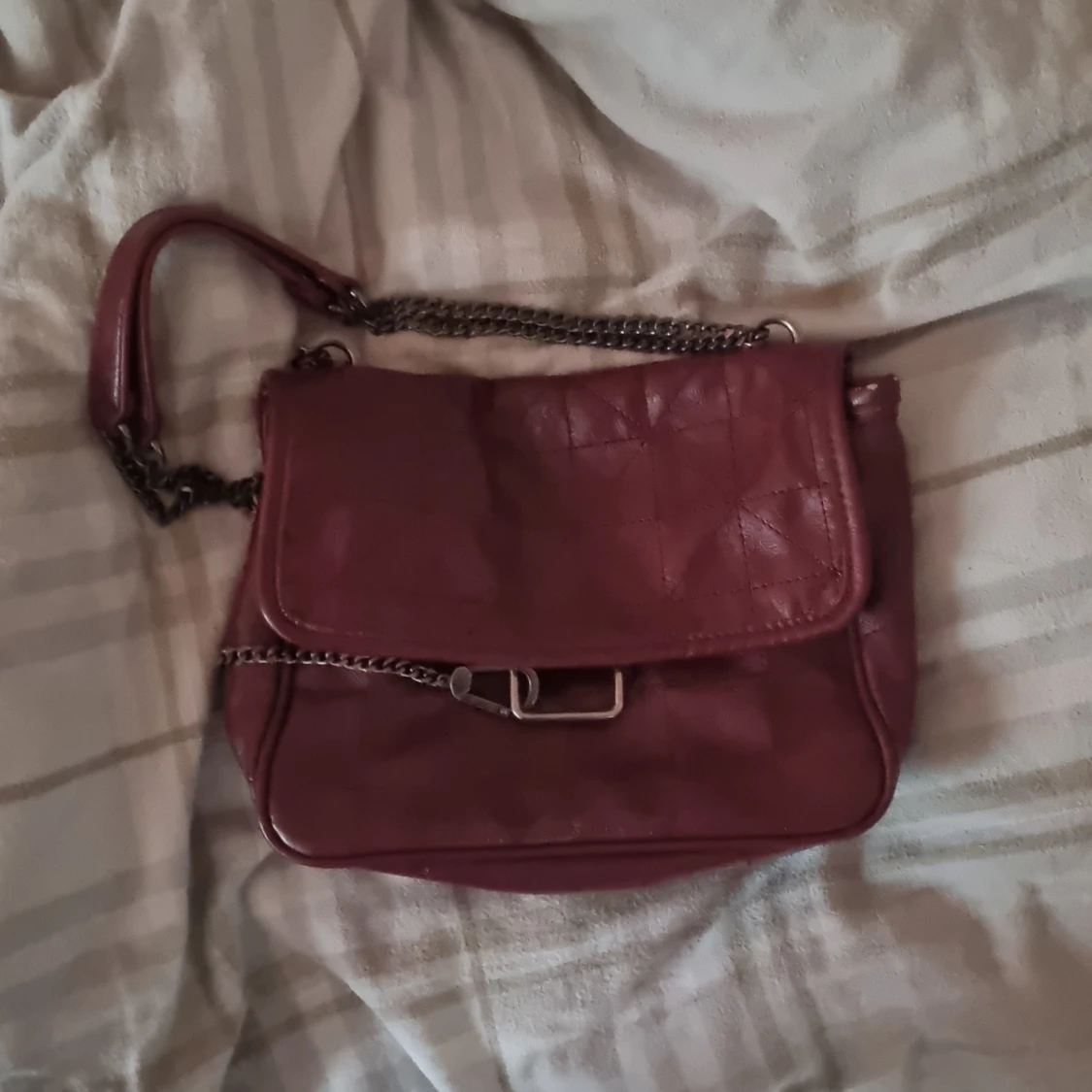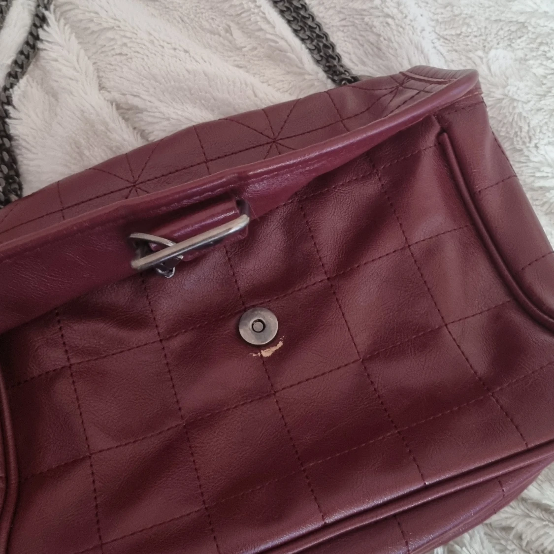 Super fin zara väska köpt här på plick men kommer tyvärr inte till användning, lite slitning vid stängning och kanten men märks knappt när man har på sig den annars jätte fräsch!!!