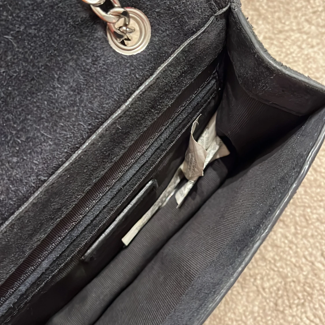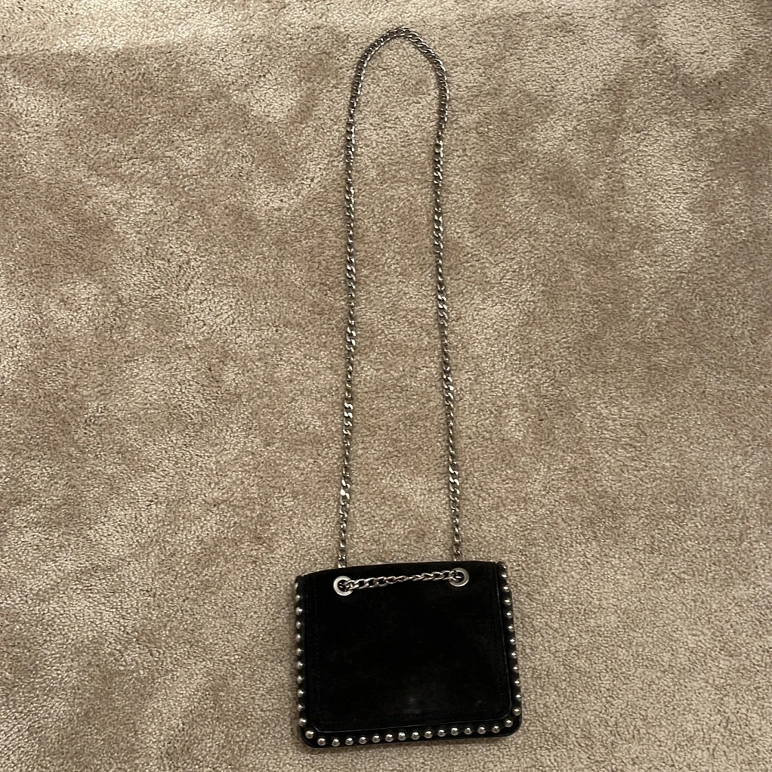Säljer denna svarta väska fråga zara med silver detaljer. Kedjan har blivit lite rostig men inget som syns på lång håll!