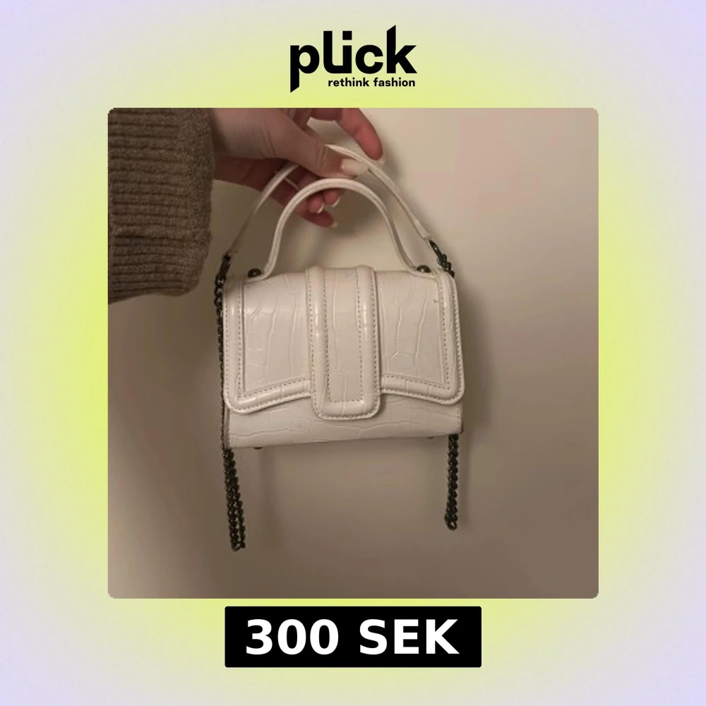 Snygg vit axelväska från zara med krokodilmönster och kedjeband. Väskan har ett handtag och en lång axelrem för flexibel användning.