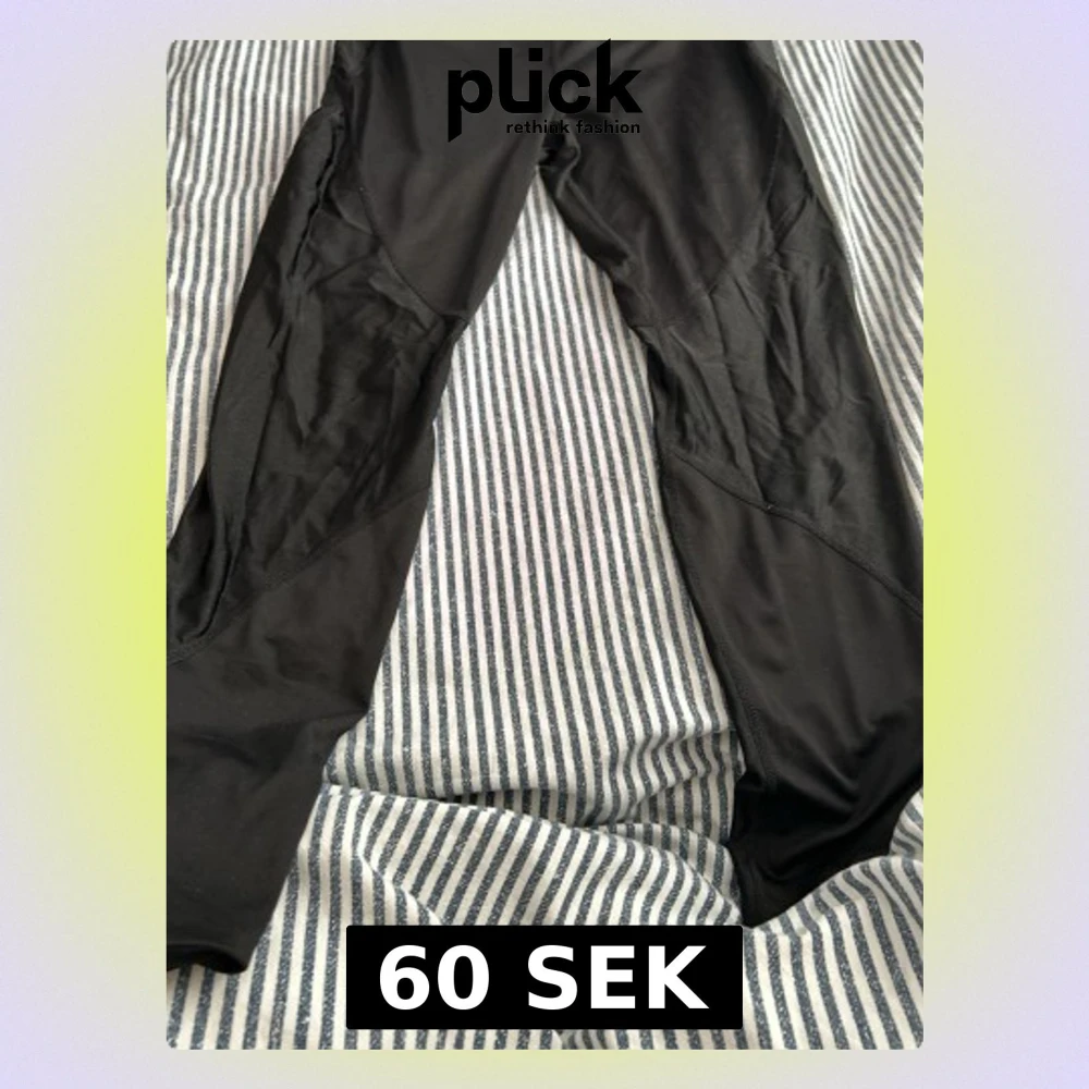 Säljer ett par svarta leggings med sportig look. De har en åtsittande passform och är tillverkade i ett stretchigt material som passar perfekt till träning eller chill. Snygga paneldetaljer längs benen för extra stilpoäng.