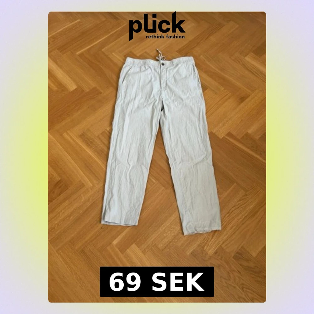 SĂ€ljer ett par ljusbeigea linnebyxor med avslappnad passform och dragsko i midjan.đ„ Knappt anvĂ€nda, st M, med vĂ€nster ben nere lite slitna. Perfekta för en chill och stilren look under varma dagar.