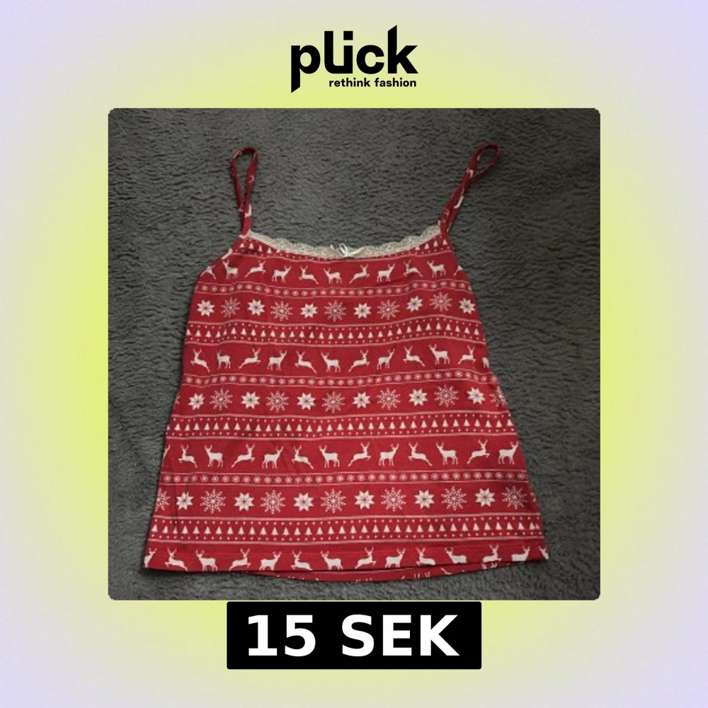 Mysigt rött loungewear-linne med smala axelband och juligt mönster av snöflingor och renar. Dekorerad med vit spetskant upptill och liten rosett i mitten. Perfekt för vinterkvällar och julmys.