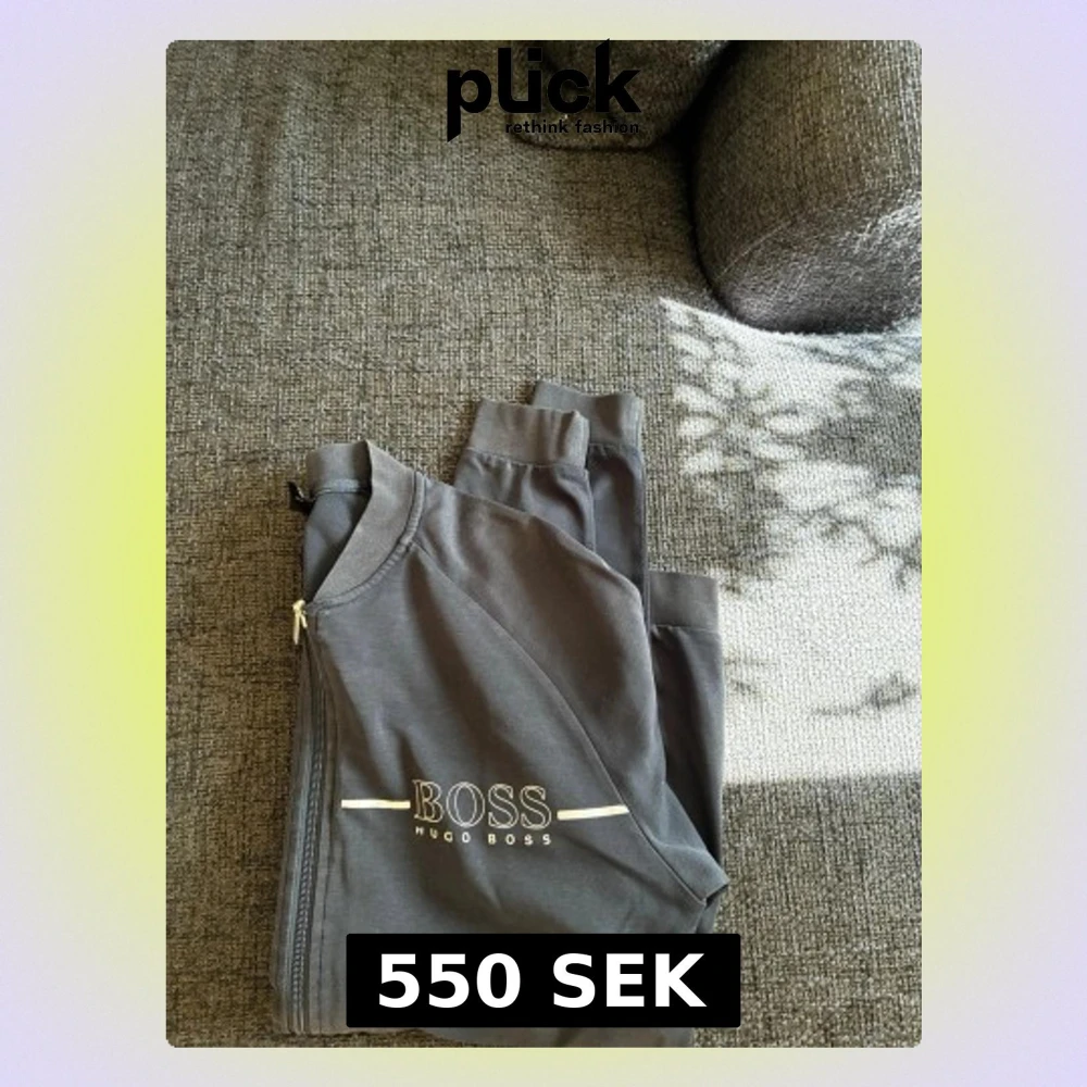 Snyggt mörkgrått loungewear-set från Hugo Boss med dragkedja framtill och två fickor med dragkedja. Setet har diskret logga på bröstet och är tillverkat i mjukt material, perfekt för chill dagar hemma.