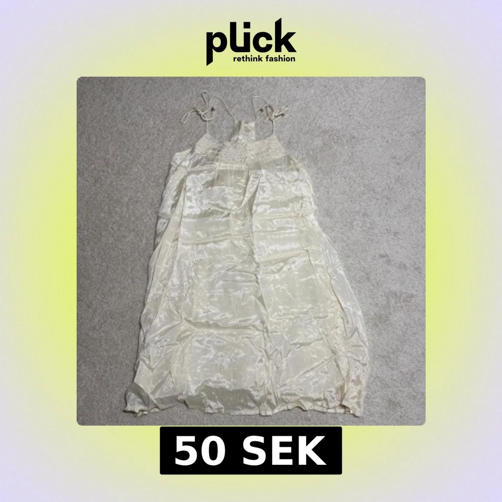 Säljer en ljus, glansig klänning från ONLY med tunna axelband som knyts och broderade detaljer upptill. Klänningen har en luftig passform och är tillverkad i ett material som påminner om siden. Perfekt för varma dagar och ger en riktigt fräsch vibe.