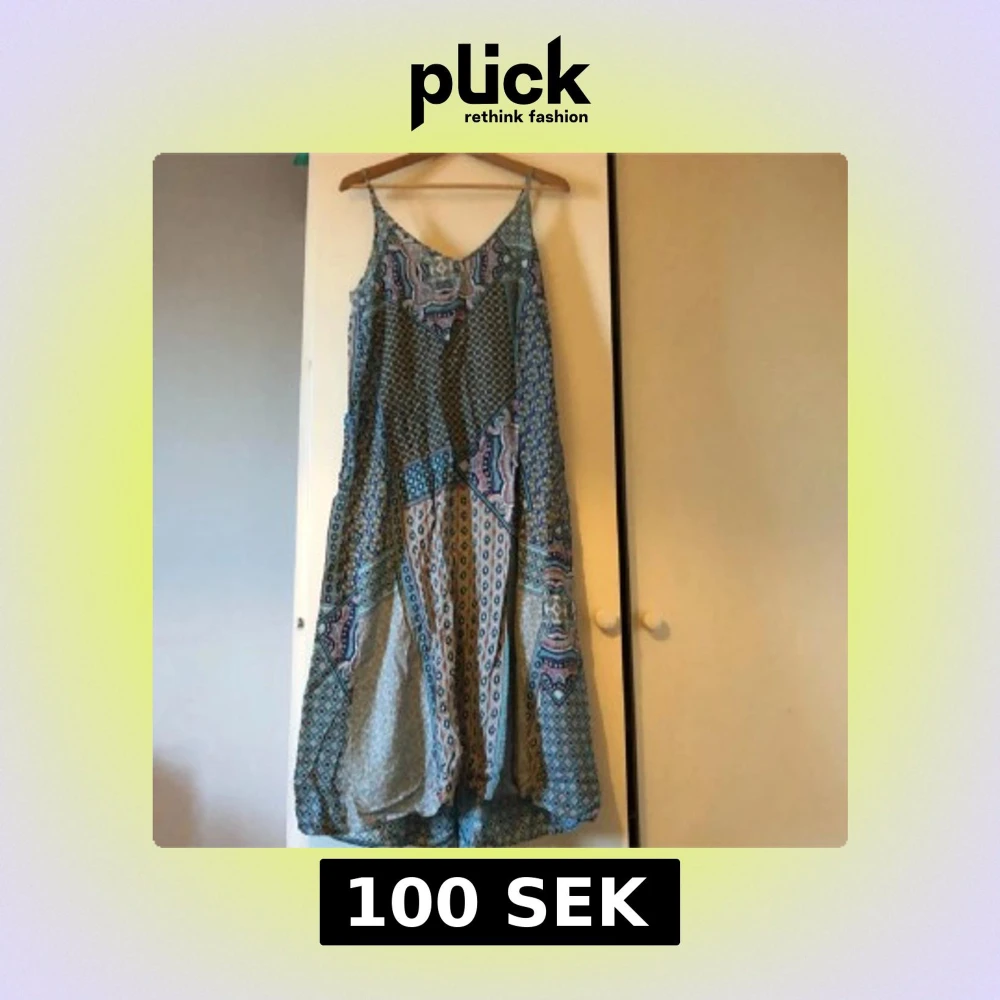 Säljer en bohemisk långklänning med ett färgglatt mönster. Klänningen har en v-ringad hals och knytning i ryggen