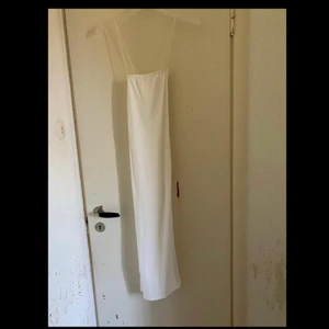 En vit klänning med en slits vid benen och har X rygg, man ser lite igenom så man får tänka på vad man har på sig under! Köpt på en app som denna. Det står att den är XS men passar även en S. Aldrig använd! Skicka pm för bättre bilder!😁