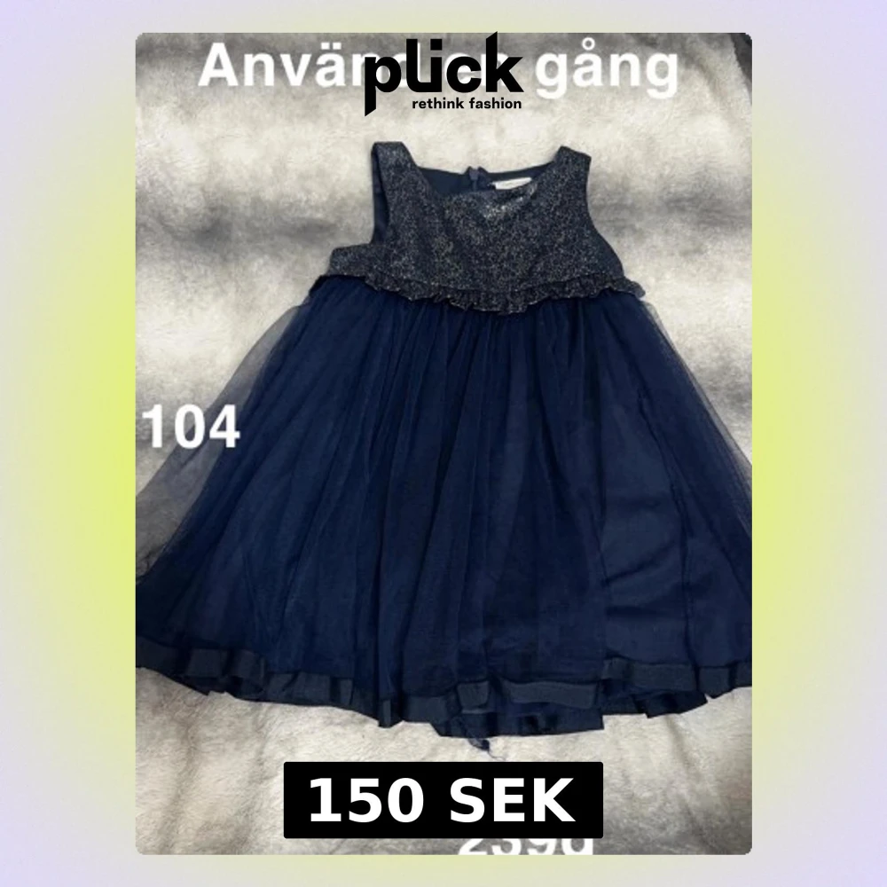 Supersöt mörkblå klänning med glittrigt liv och volangdetalj. Kjolen är fluffig i flera lager tyll och klänningen är ärmlös. Perfekt för speciella tillfällen när man vill känna sig extra fin.🌸 Använd en gång. Storlek 104