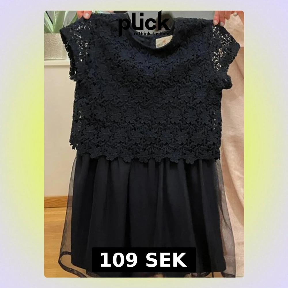Supersöt svart kortklänning från Holly & Whyte med blommig spets upptill och luftig kjol i flera lager. Klänningen har korta ärmar och rund halsringning. Perfekt för dig som gillar en klassisk men ändå trendig look.