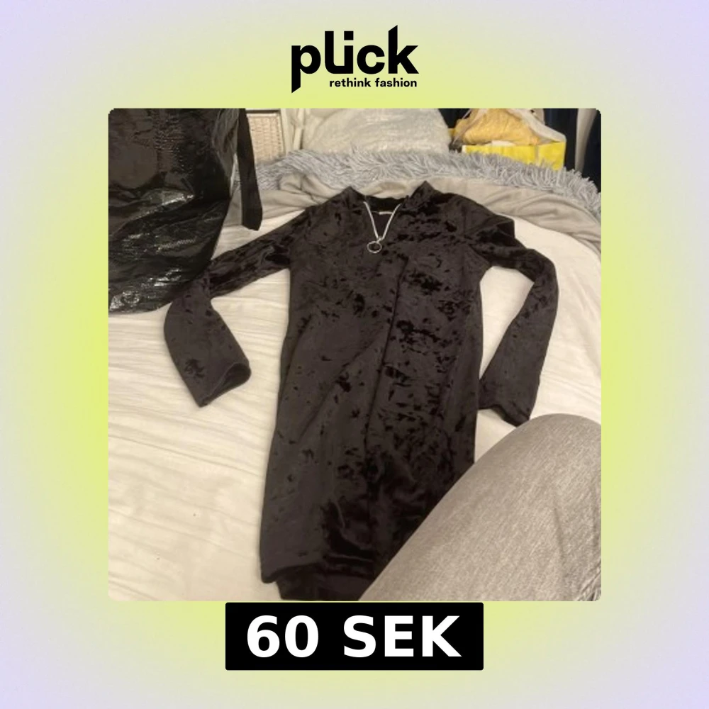 Supersnygg svart sammetsklänning med lång ärm och enkel, rak passform. Klänningen har en mjuk, glansig yta som ger en lyxig känsla och funkar perfekt när du vill sticka ut lite extra. Klassisk och stilren look.